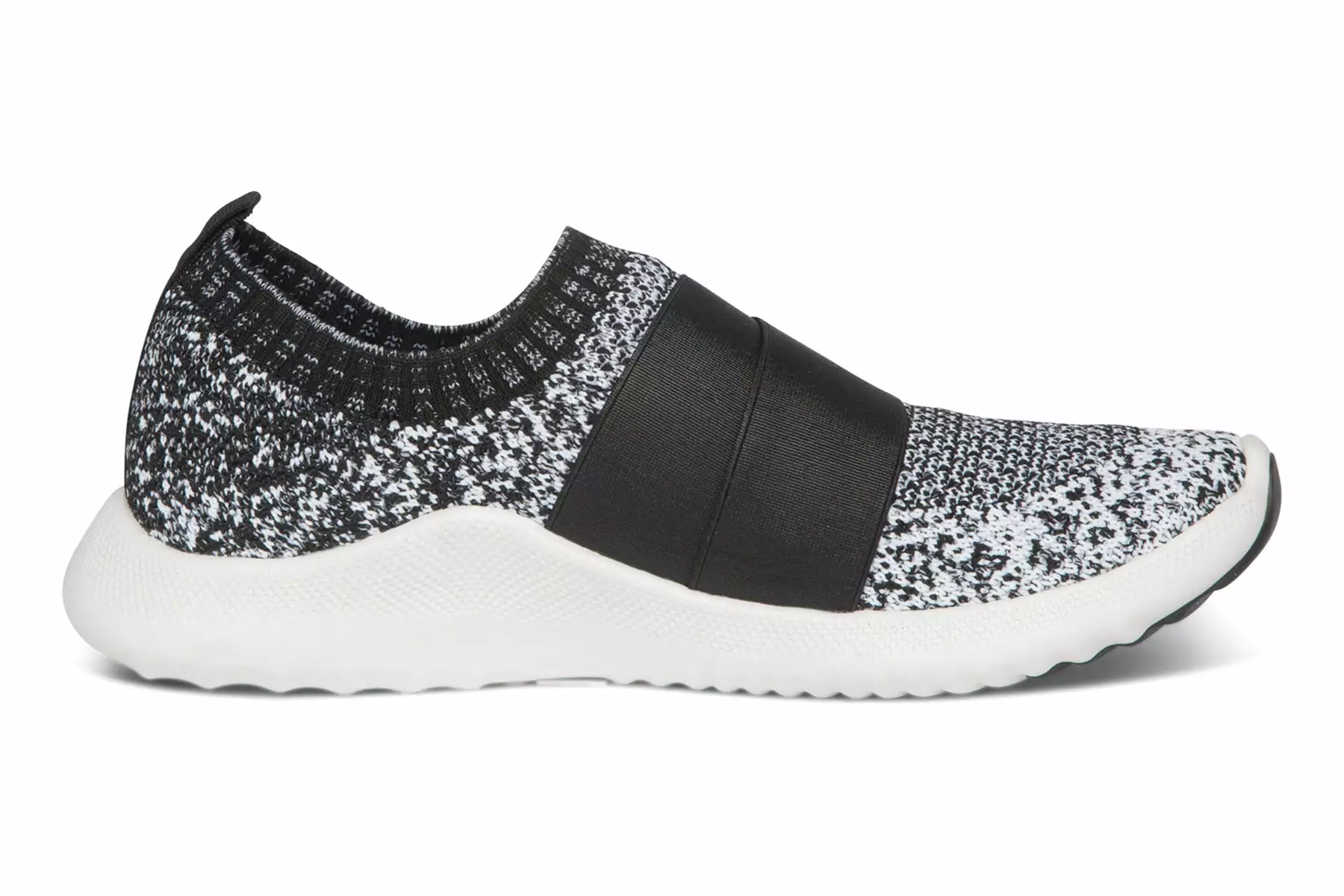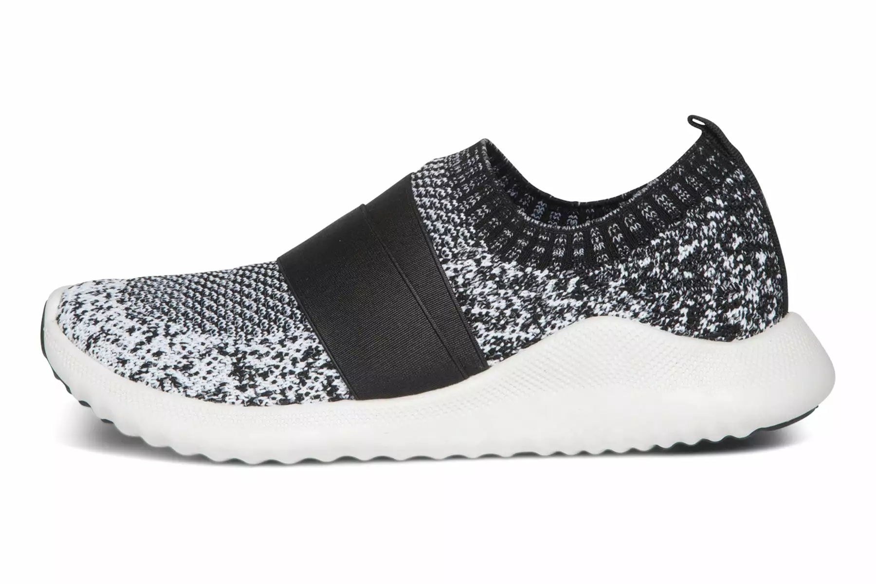 This fashionable slip-on sneaker with arch support is the lift you need on long days. They are great for walking and long days on the foot! With arch support, memory foam cushioning, a padded heel, and stretchy knit, you will be comfortable on your most active days.