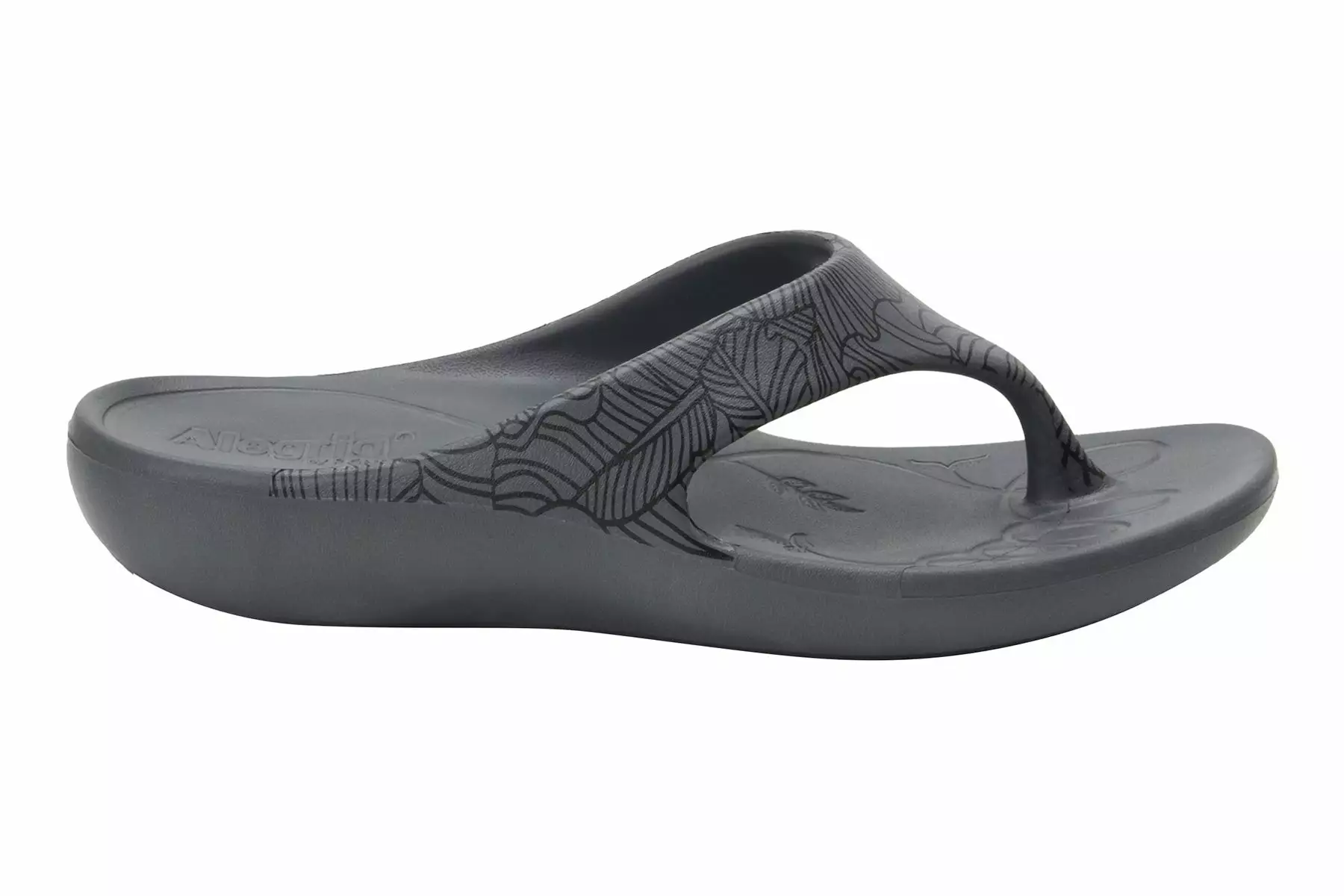 Alegria Ode is a toe post sandal for warm weather days. These recovery sandals have a one-piece EVA construction, built-in molded arch support and EVA outsole. A contoured footbed adds comfort, while a rocker outsole helps to relieve tension.