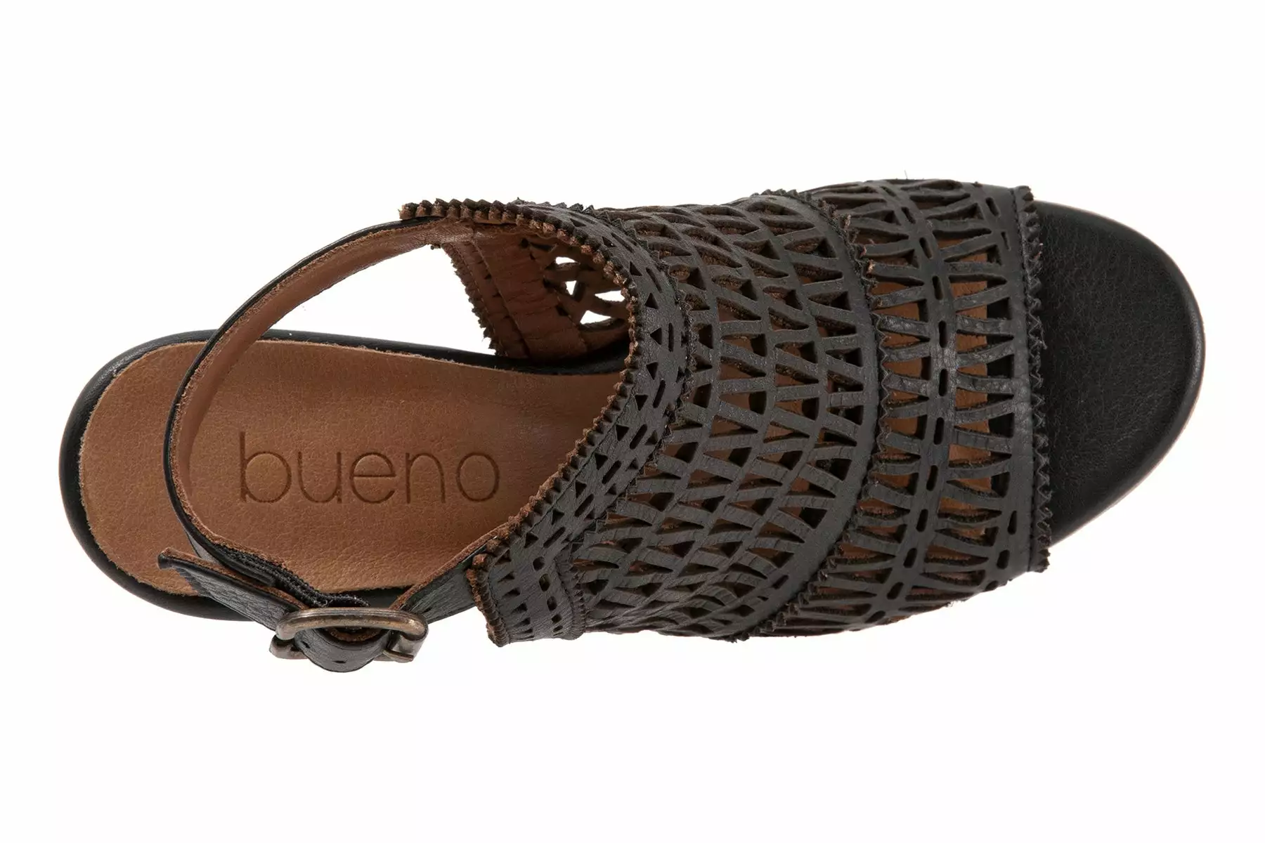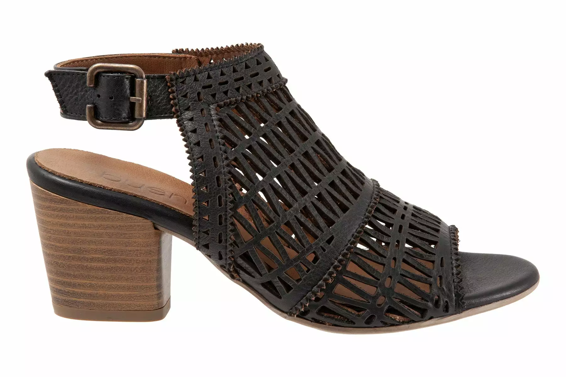 A sexy stacked wedge heel with an adjustable strap and cut out designs for a casual style.