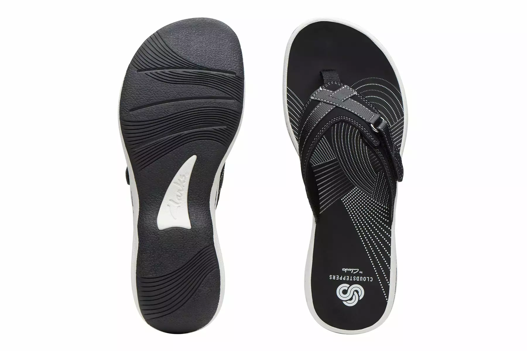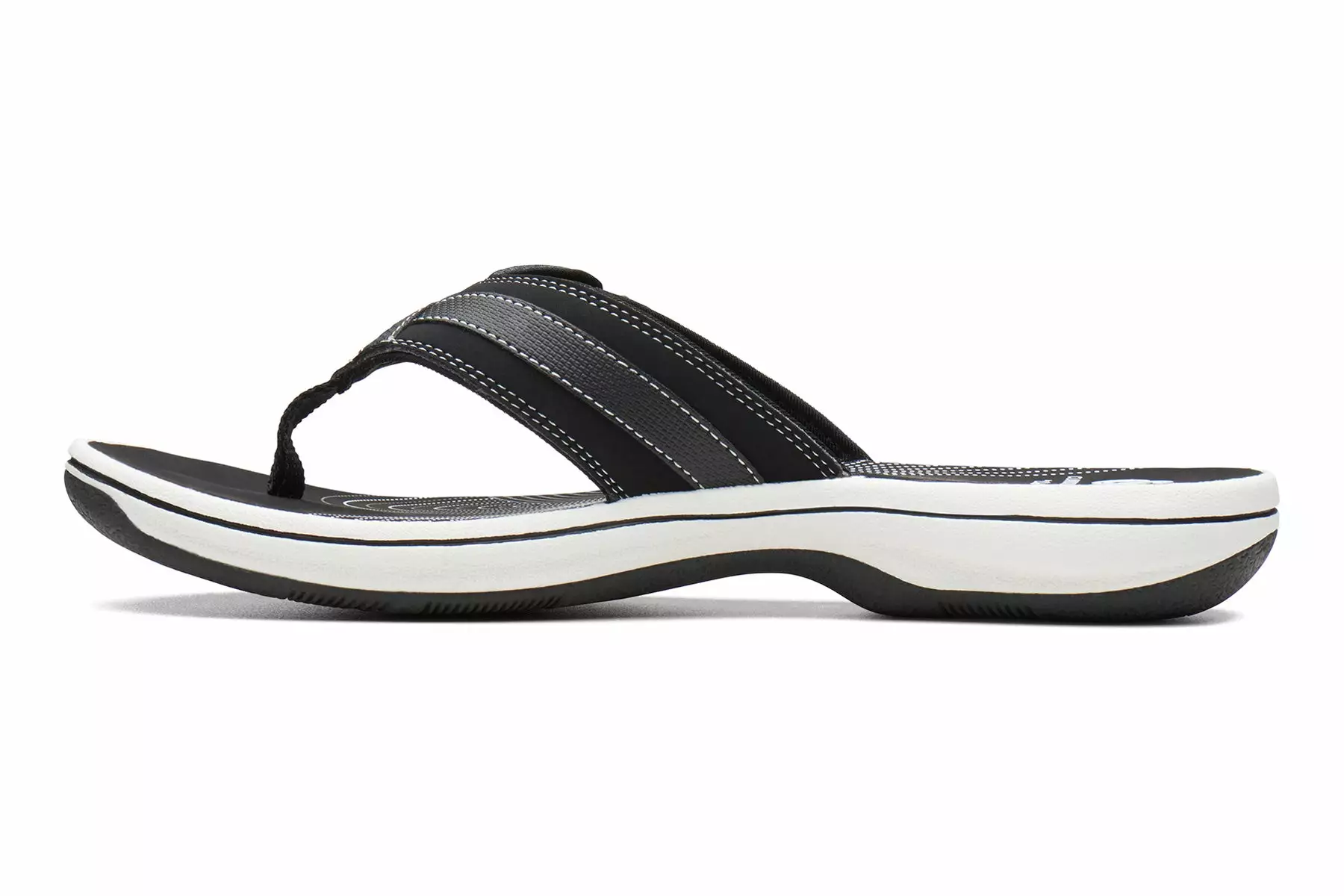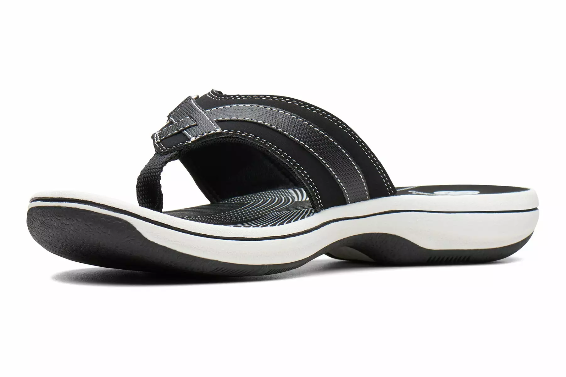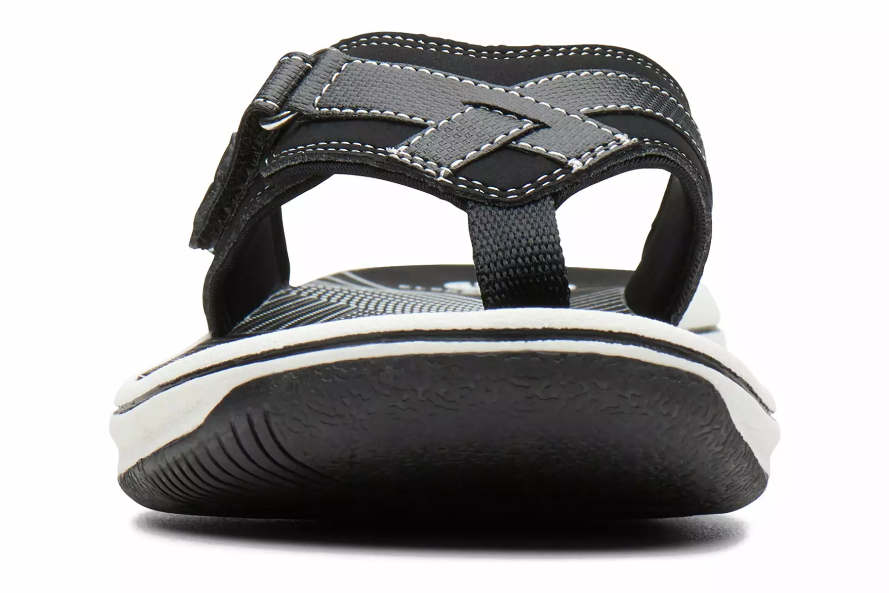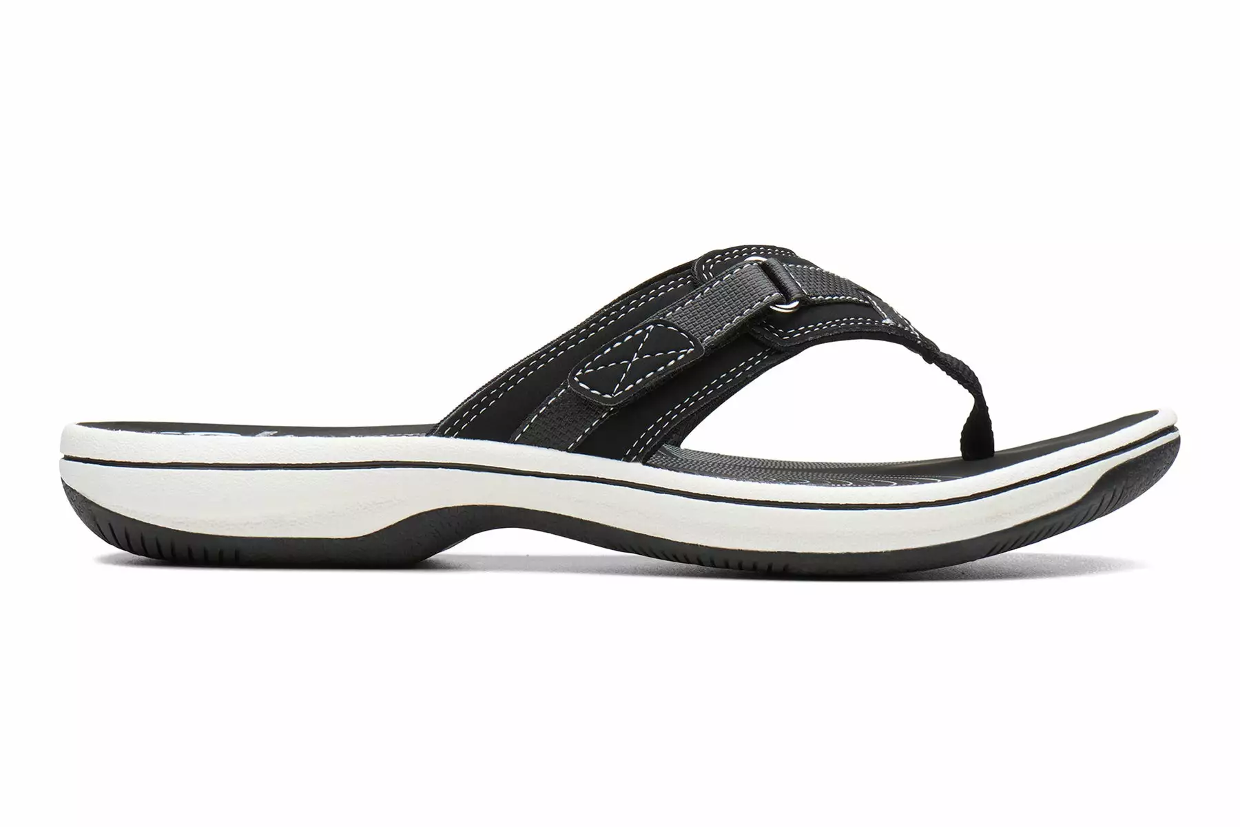 Enjoy the good looks, special details and comfort of the women’s Clarks Breeze Sea thong sandal. The leather upper is designed with a hook and loop closure to keep your foot securely in place. The textile fabric lining adds comfort and softness. The lightweight, EVA footbed provides long-lasting comfort and the thermoplastic rubber outsole provides durable traction for all-day wear.