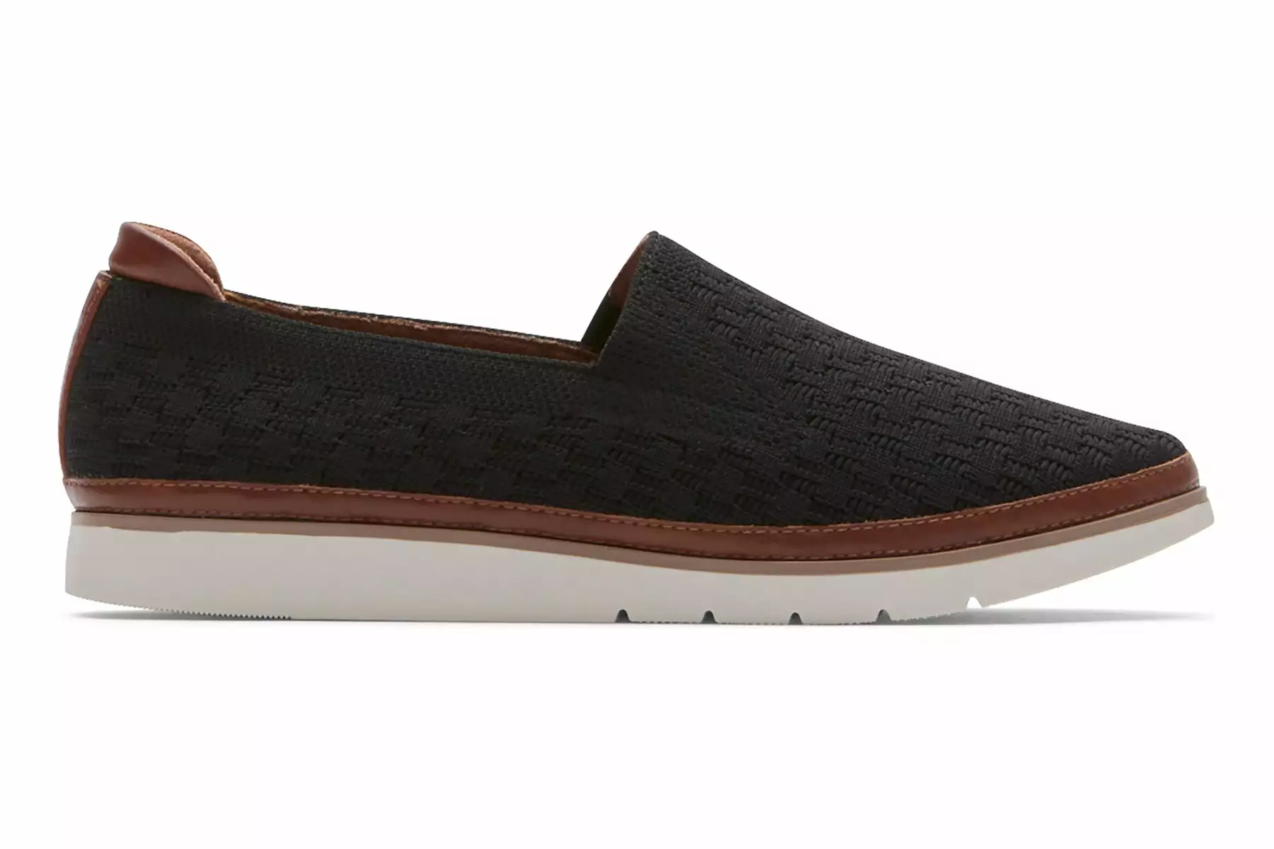Cobb Hill Camryn Slip-On is a casual everyday shoe. Crafted with a knit stretch material, these trendy shoes have a textured pattern, cushioned footbed and flexible outsole. A softly lined interior lets your feet breathe, a removable EVA footbed provides impact absorption and TPR outsole offers traction.