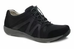 Dansko Henriette is a sporty and sleek comfort sneaker. These active shoes feature a suede and recycled nylon upper, removable EVA footbed and rubber outsole. Adjustable bungee laces, a cooling sock lining and strobel construction provides support and flexibility.
