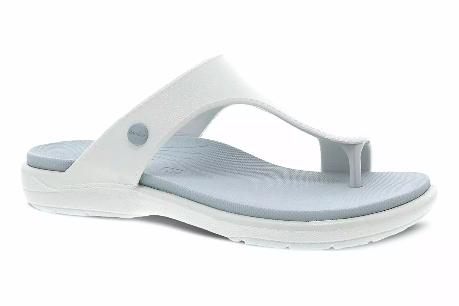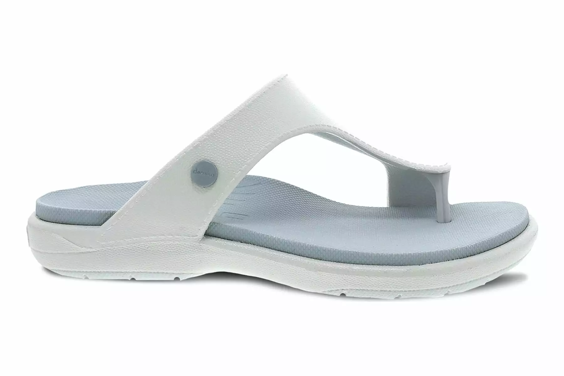 Dansko Krystal is a lightweight and comfortable toe post sandal. A synthetic upper, cushioned EVA footbed and adjustable buckles makes these sandals stand out. These trendy summer shoes feature a molded TPU toe post, superior arch support and open round toe.