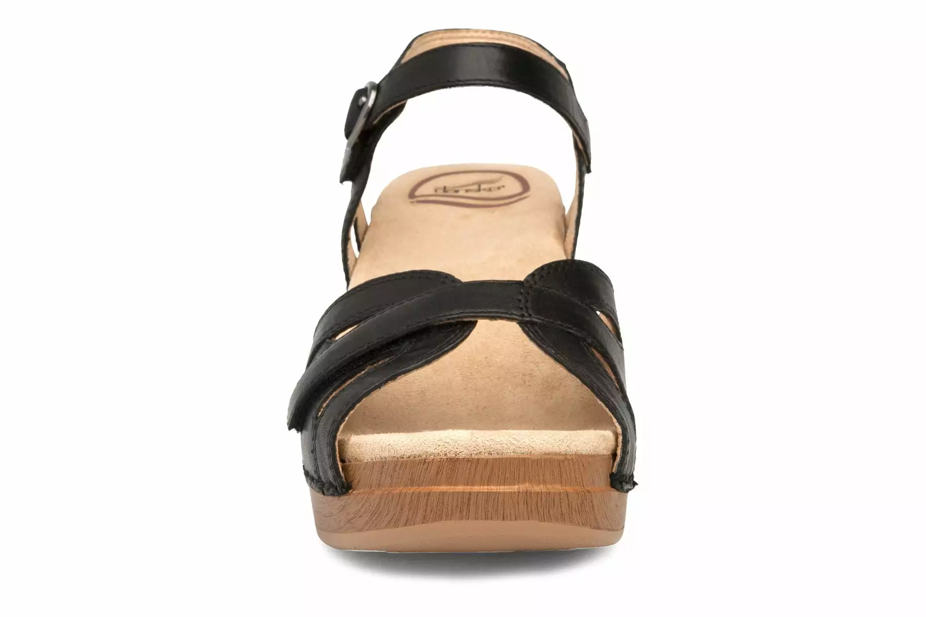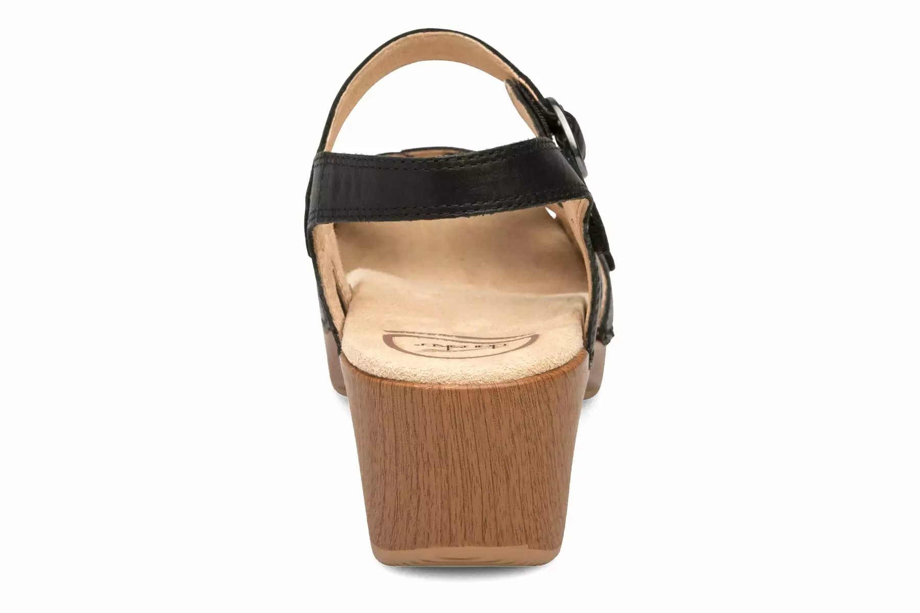 Dansko Season is a strappy and comfortable summer sandal. These shoes feature a leather upper with 2 adjustable straps, cushioned footbed and PU outsole. A breathable leather lining is moisture-wicking, while a woodgrain textured block heel and platform offers elevated support.