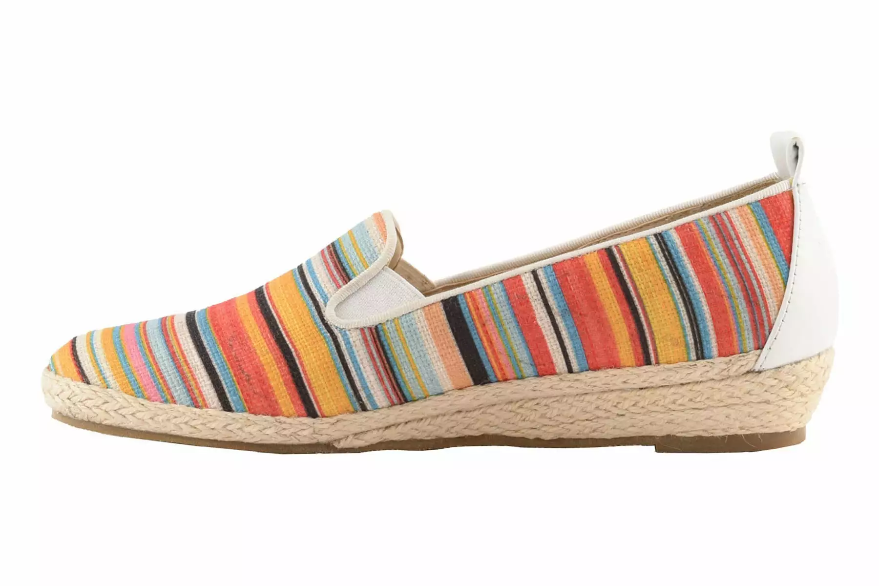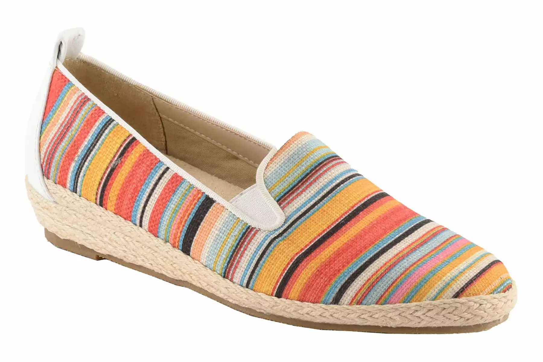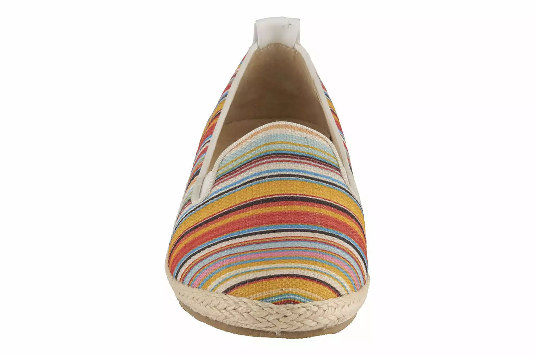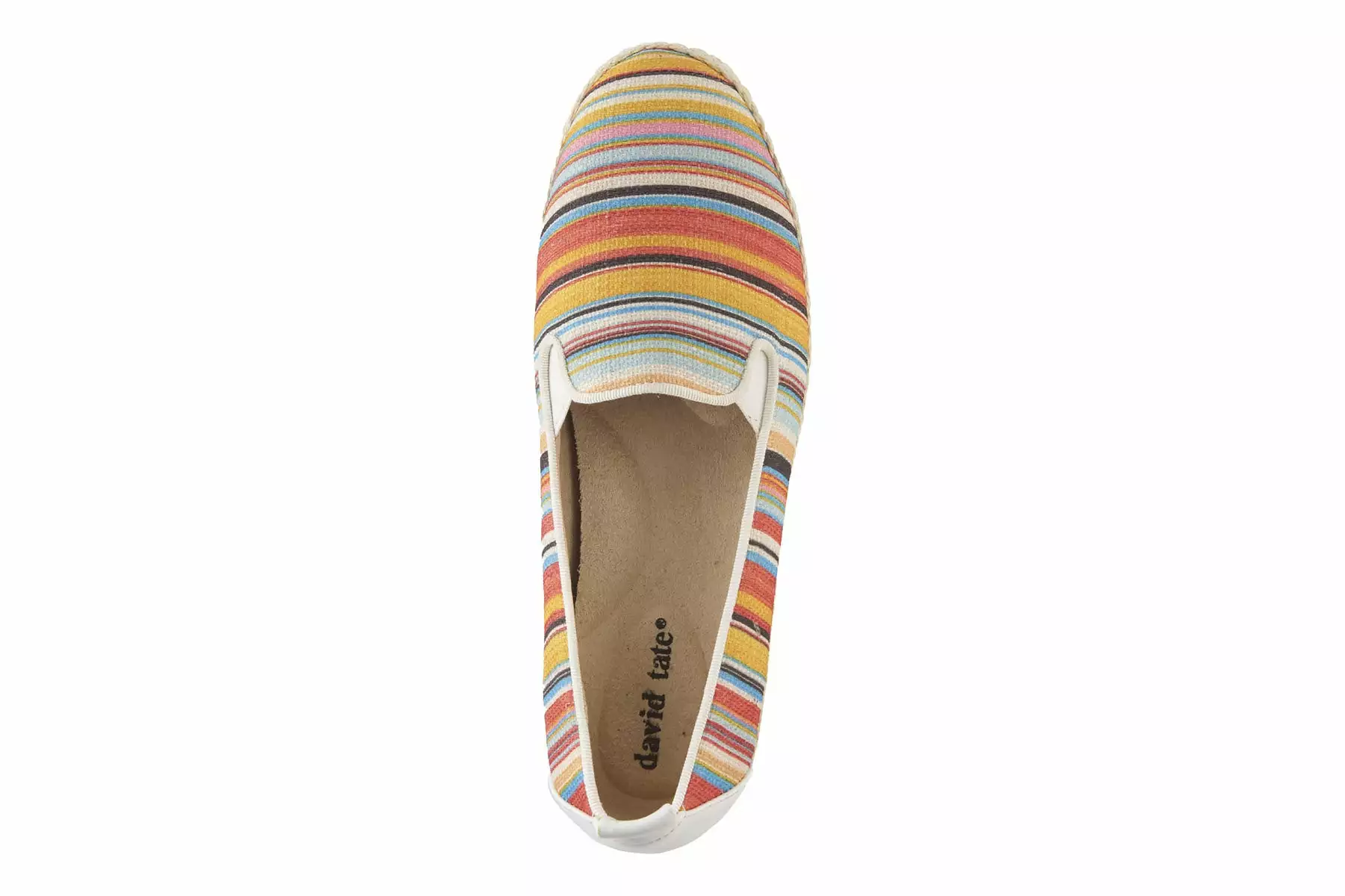 David Tate Sangria is an espadrille inspired slip-on shoe. Features include a canvas upper, double stretch gore, foam-padded wool insole and rubber outsole. A back pull tab, low heel, round toe design and cotton tricot lining outlines these trendy shoes.