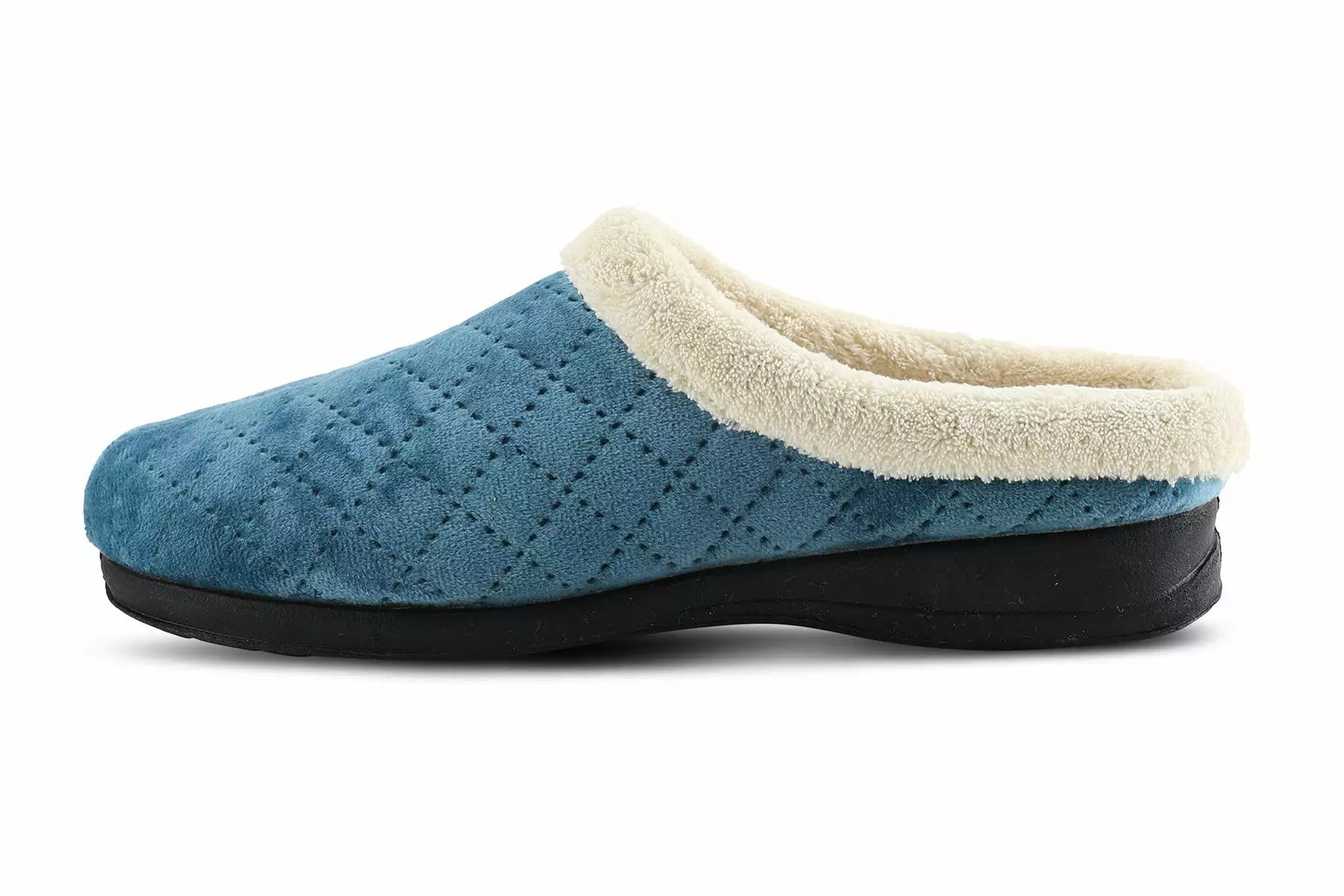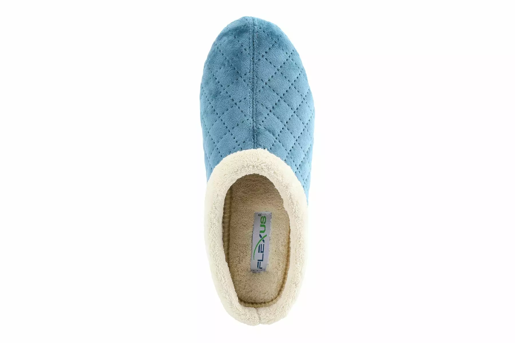 Flexus SLEEPER Beautiful slipper with diamond quilting and a center seam with a cozy lining and trim, and memory foam insole on a comfort outsole.