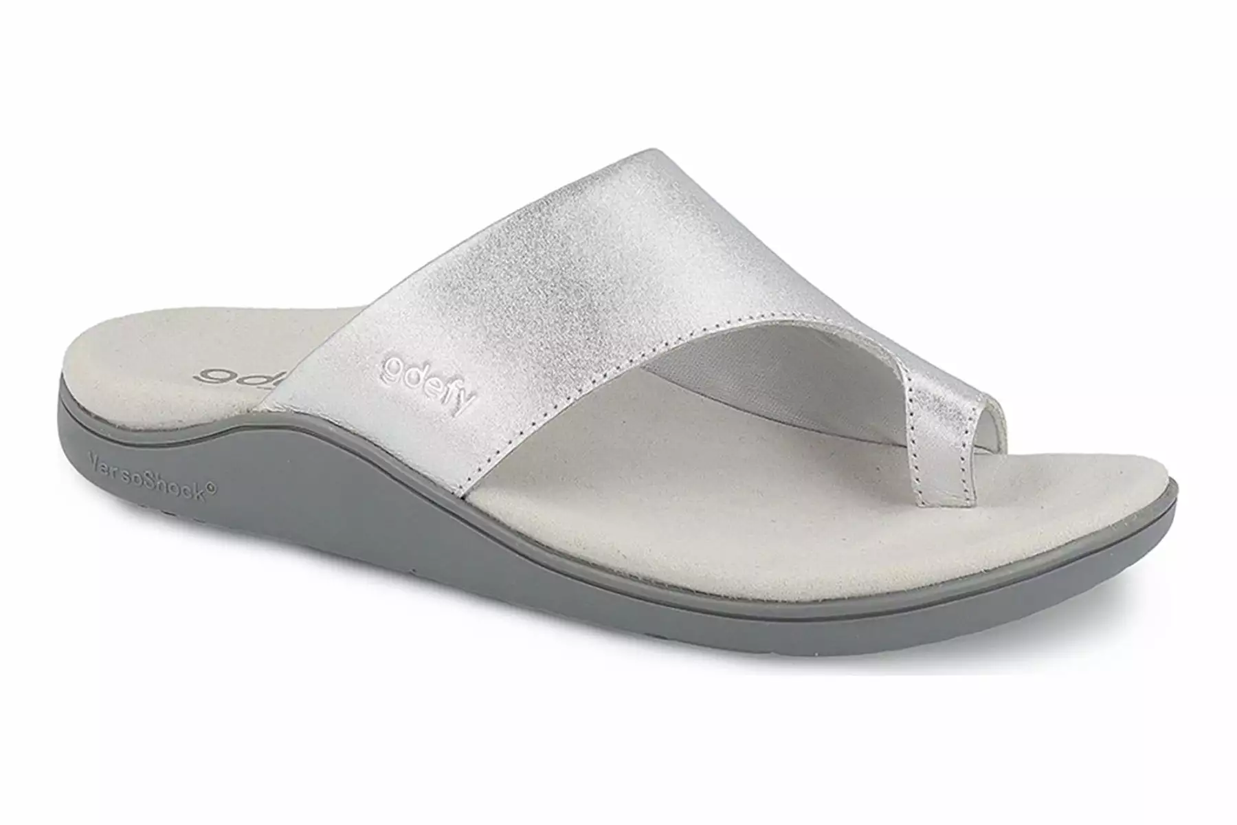 GDEFY Etztal is a chic sturdy toe post sandal designed for comfort. Features include soft leather uppers, cushioned EVA footbed and outdoor tread pattern. These sandals also have built-in orthotics for arch support and a protective deep heel cup for stability.