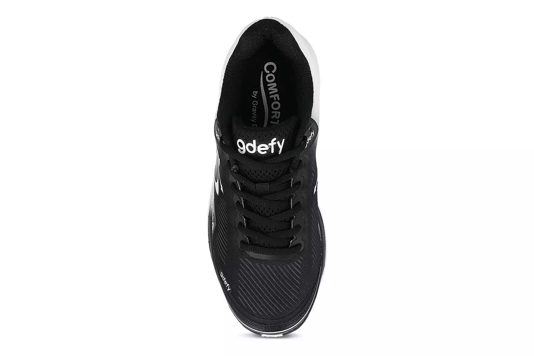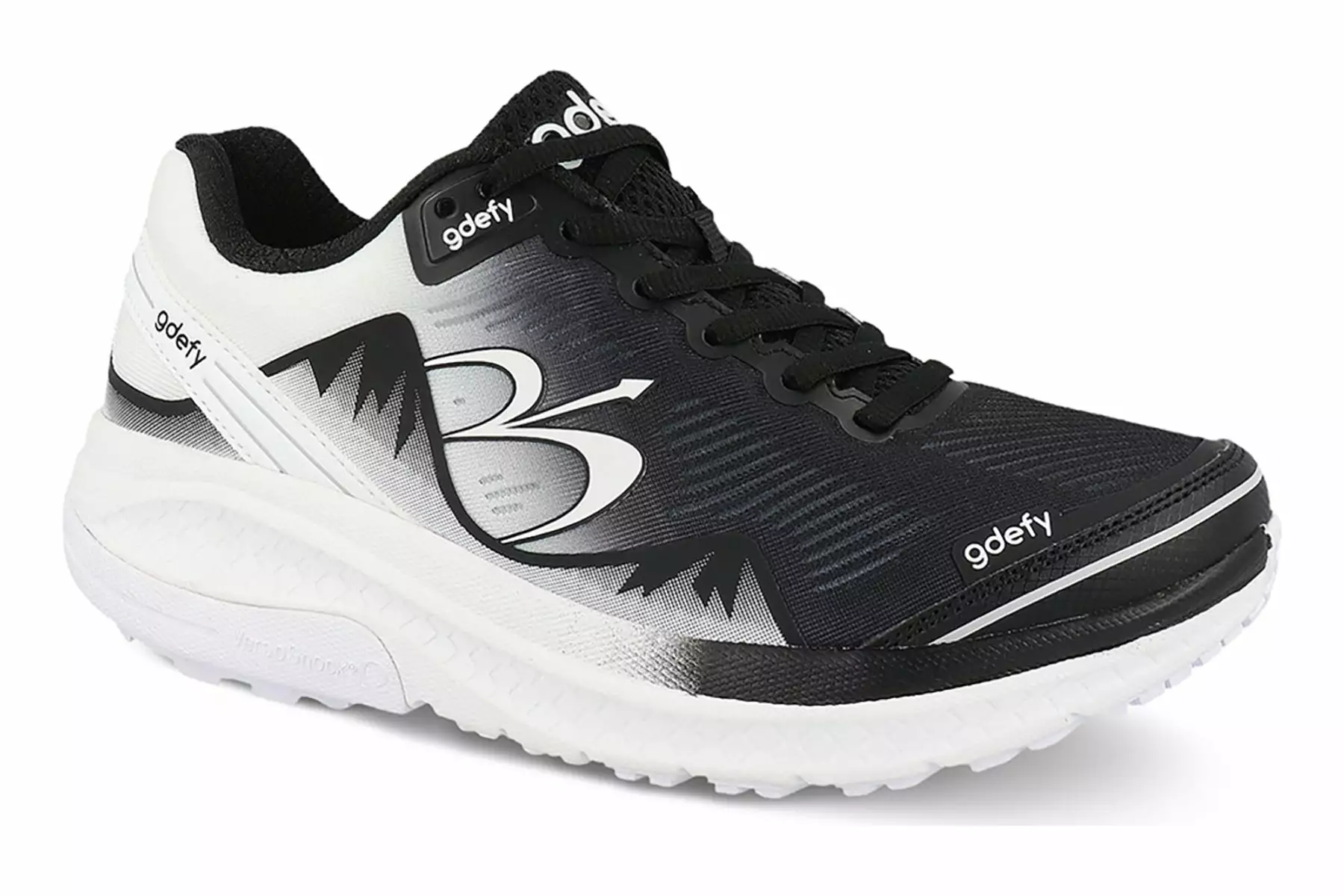 GDEFY Mighty Walk is an active sneaker designed for comfort and stability. VersoShock technology reduces knee pain and a roomy toe box helps blood circulation. A front rolling design relieves foot stress and a durable mesh upper provides breathability, flexibility and ventilation.