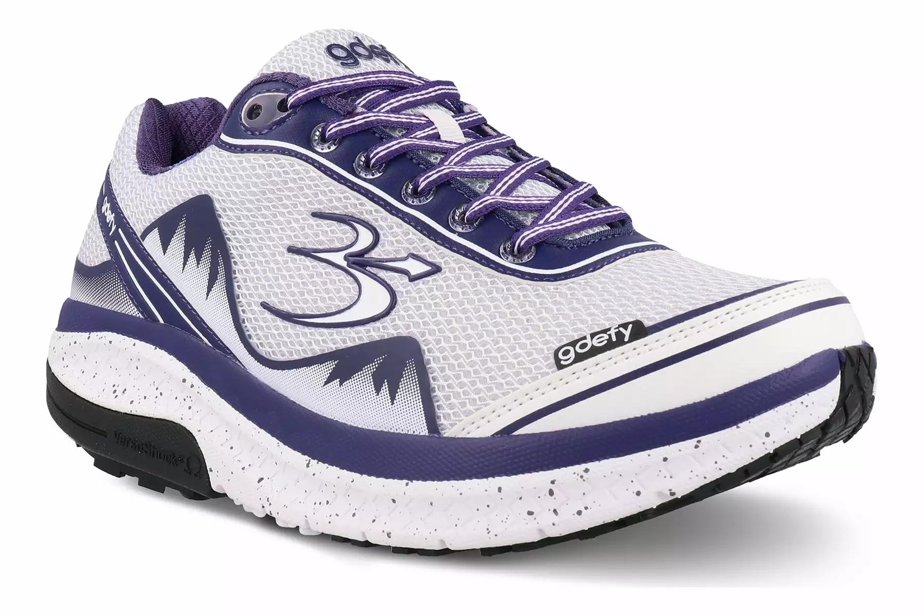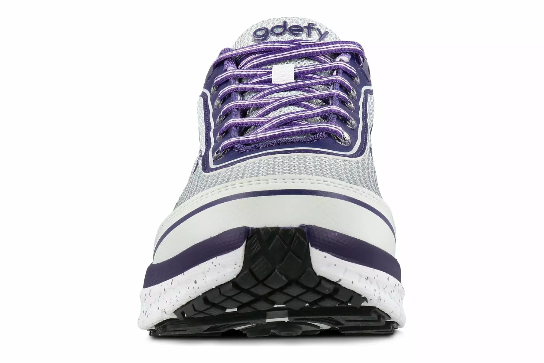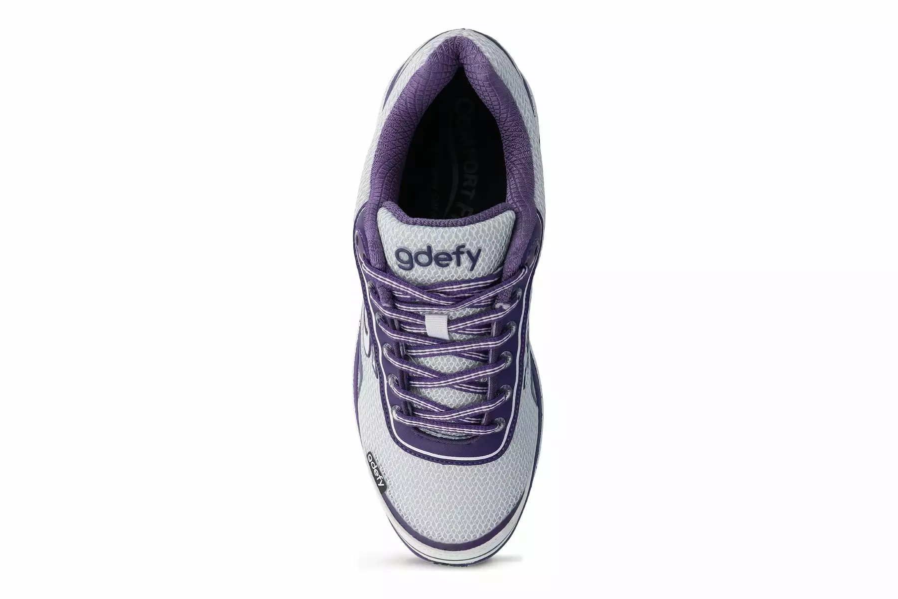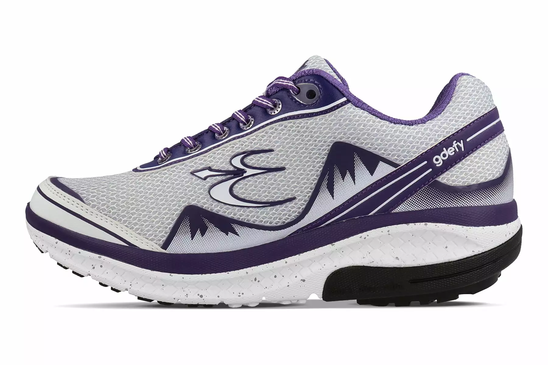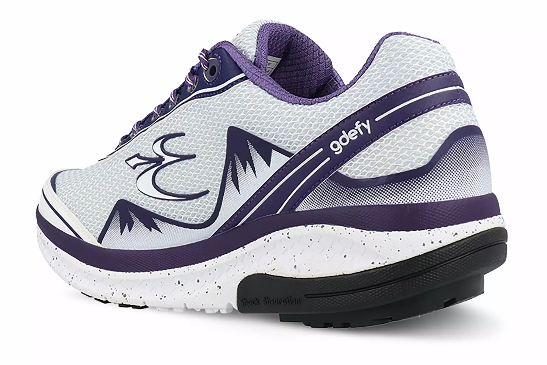 GDEFY Mighty Walk is an active sneaker designed for comfort and stability. VersoShock technology reduces knee pain and a roomy toe box helps blood circulation. A front rolling design relieves foot stress and a durable mesh upper provides breathability, flexibility and ventilation.