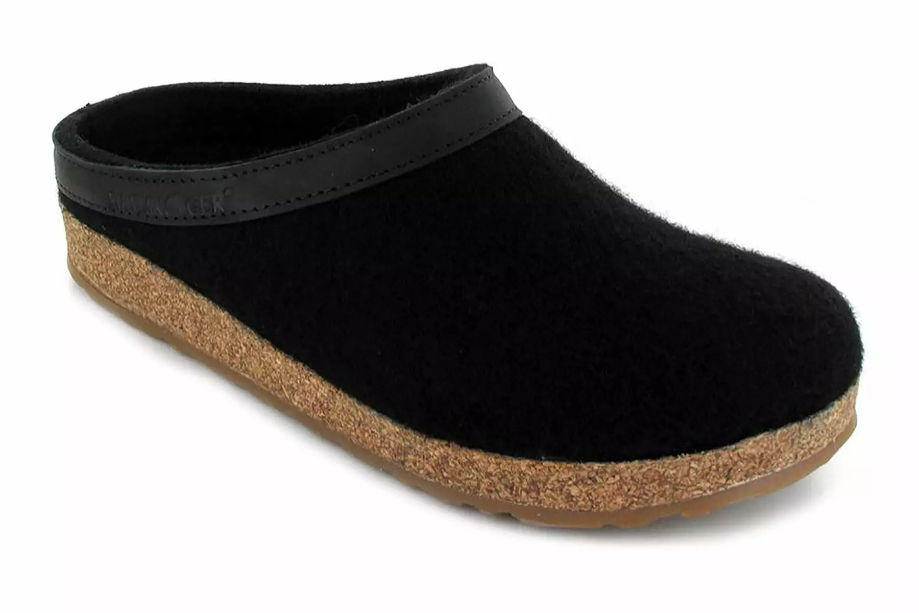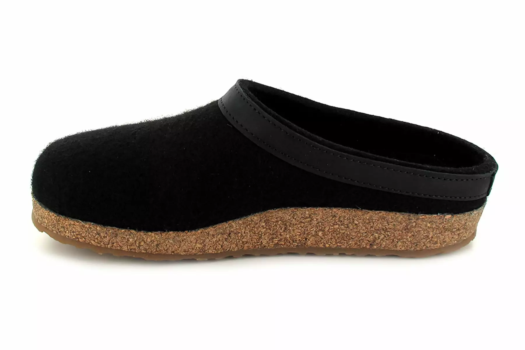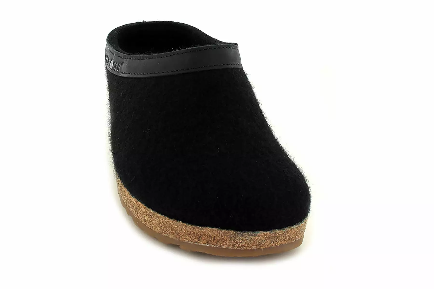 Haflinger GZL is a warm and comfortable clog. These trendy shoes have wool felt uppers with leather trim, cork and latex midsole and rubber traction outsole. A wool-covered footbed provides comfort, while a felt lined insole helps to wick away moisture.