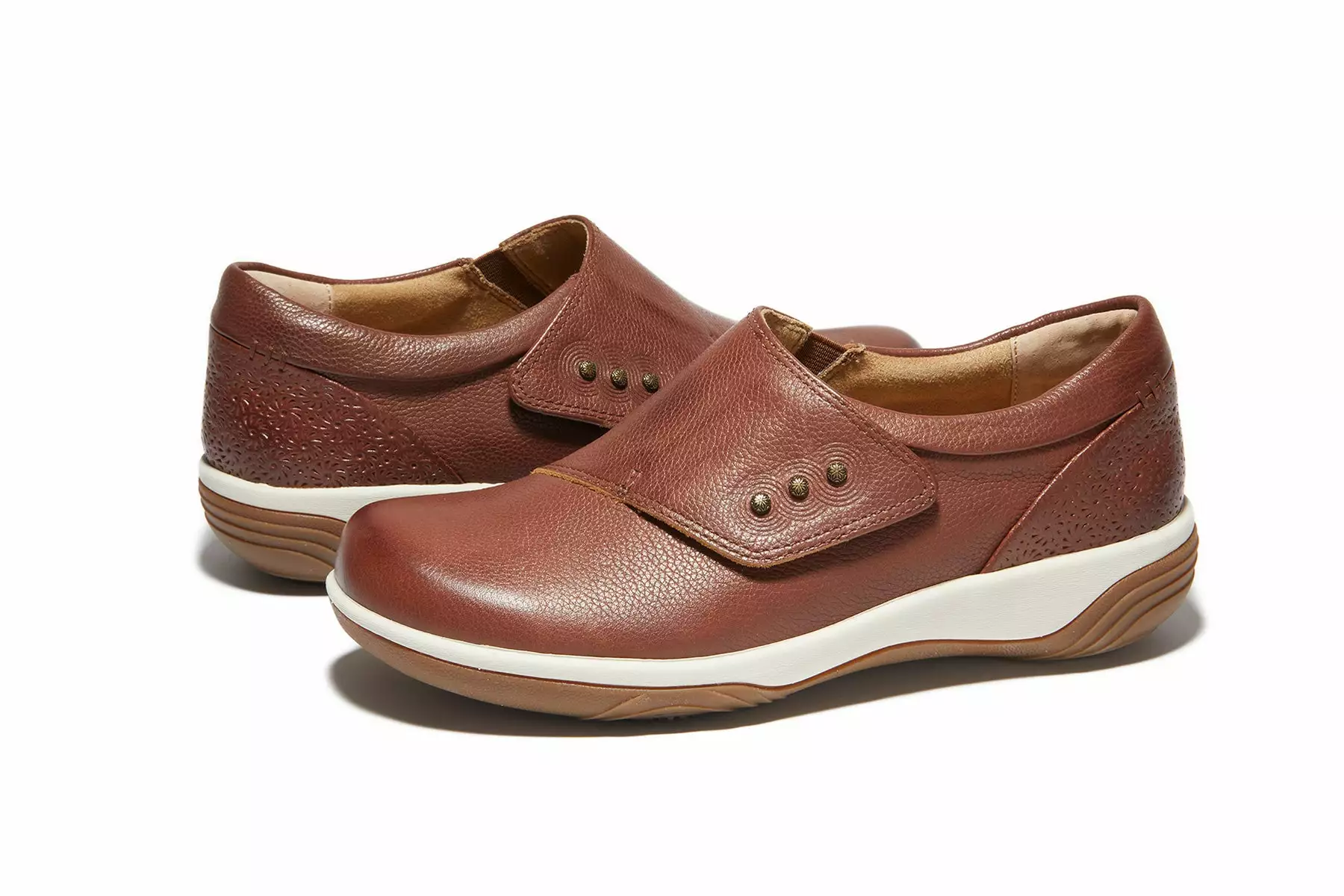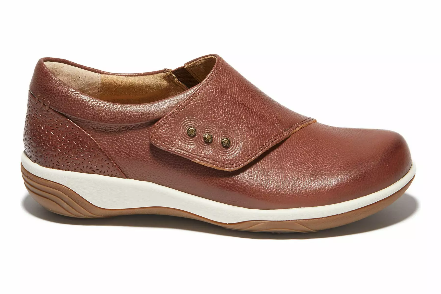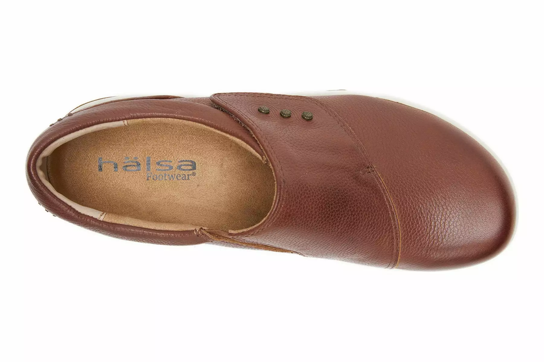 Halsa Footwear Anna is a sturdy and trendy clog built for comfort. Enjoy premium leather uppers, removable EVA footbed, textile lining and rubber outsole. These clogs also have an adjustable hook and loop side closure, round toe and antimicrobial treatment.