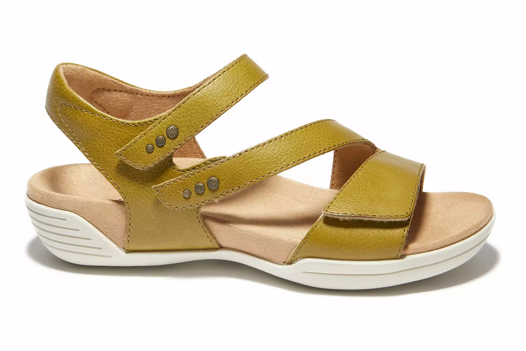 Halsa Footwear Denia is a trendy and comfortable women’s sandal. These summer shoes have leather uppers, cushioned footbed and rubber and synthetic outsole. Three adjustable hook and loop straps, antimicrobial fabric lining and insole and padded ankle strap helps these sandals stand out.