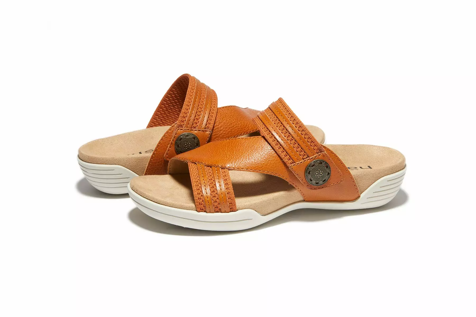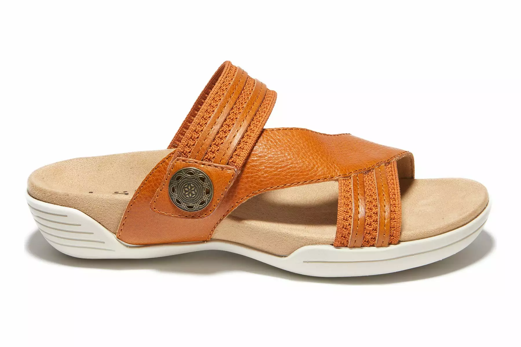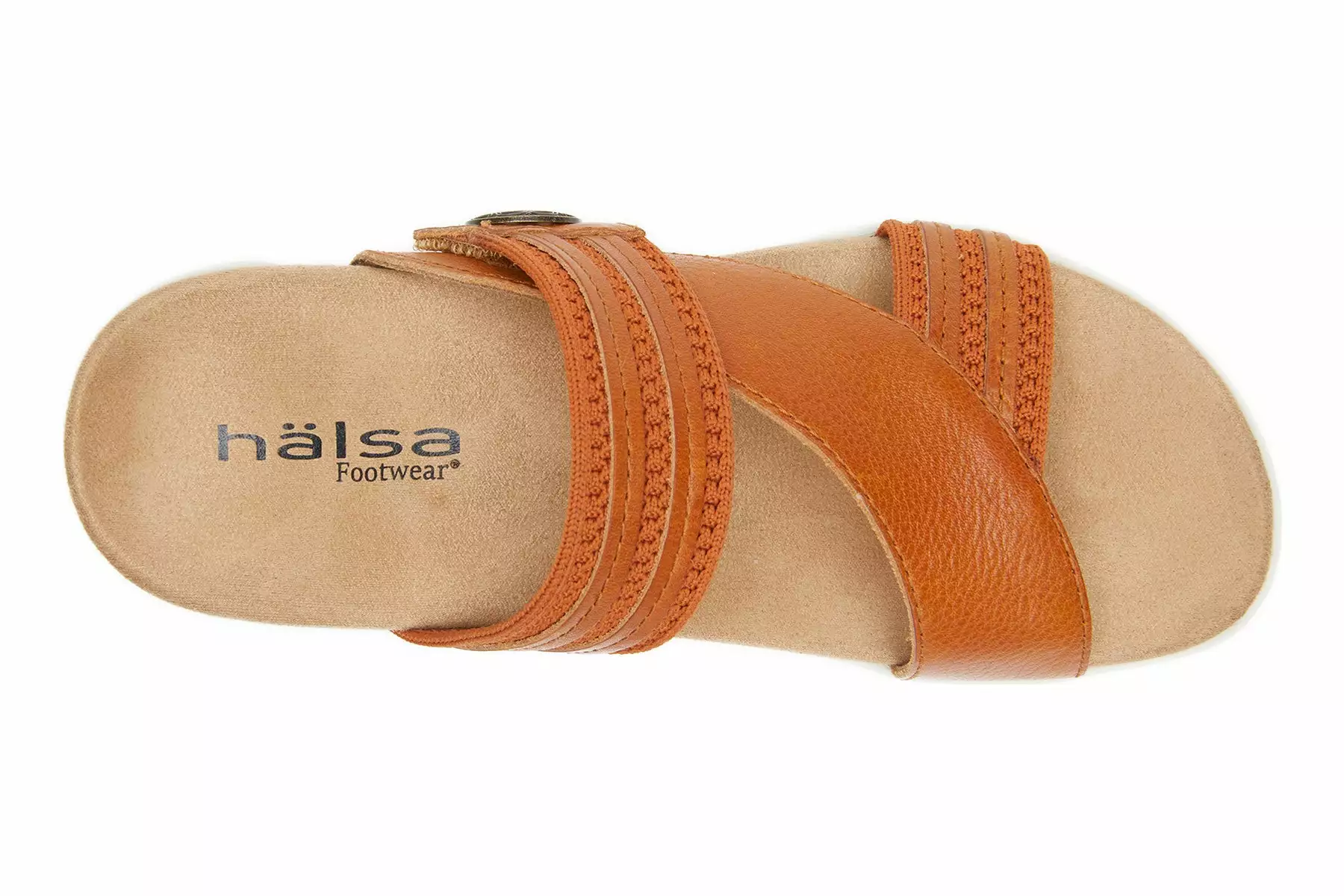 Halsa Footwear Desiree is a fashionable comfort sandal. Features include leather uppers, textile lining, cushioned EVA footbed and rubber and synthetic outsole. A hook and loop closure, lightweight and flexible midsole and metal hardware detailing will make these sandals a new favorite.