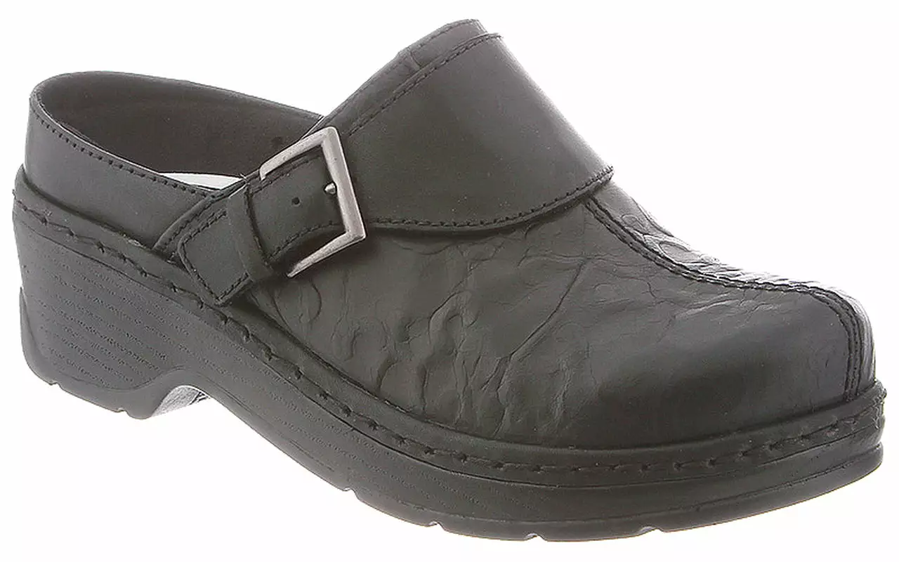Klogs Footwear Austin is a stylish open back clog. These sturdy women’s clogs have leather uppers with adjustable buckles and shock-absorbing PU outsoles. A removable footbed provides arch support, soft microfiber linings add all-day comfort and non-marking outsoles make these great work shoes.