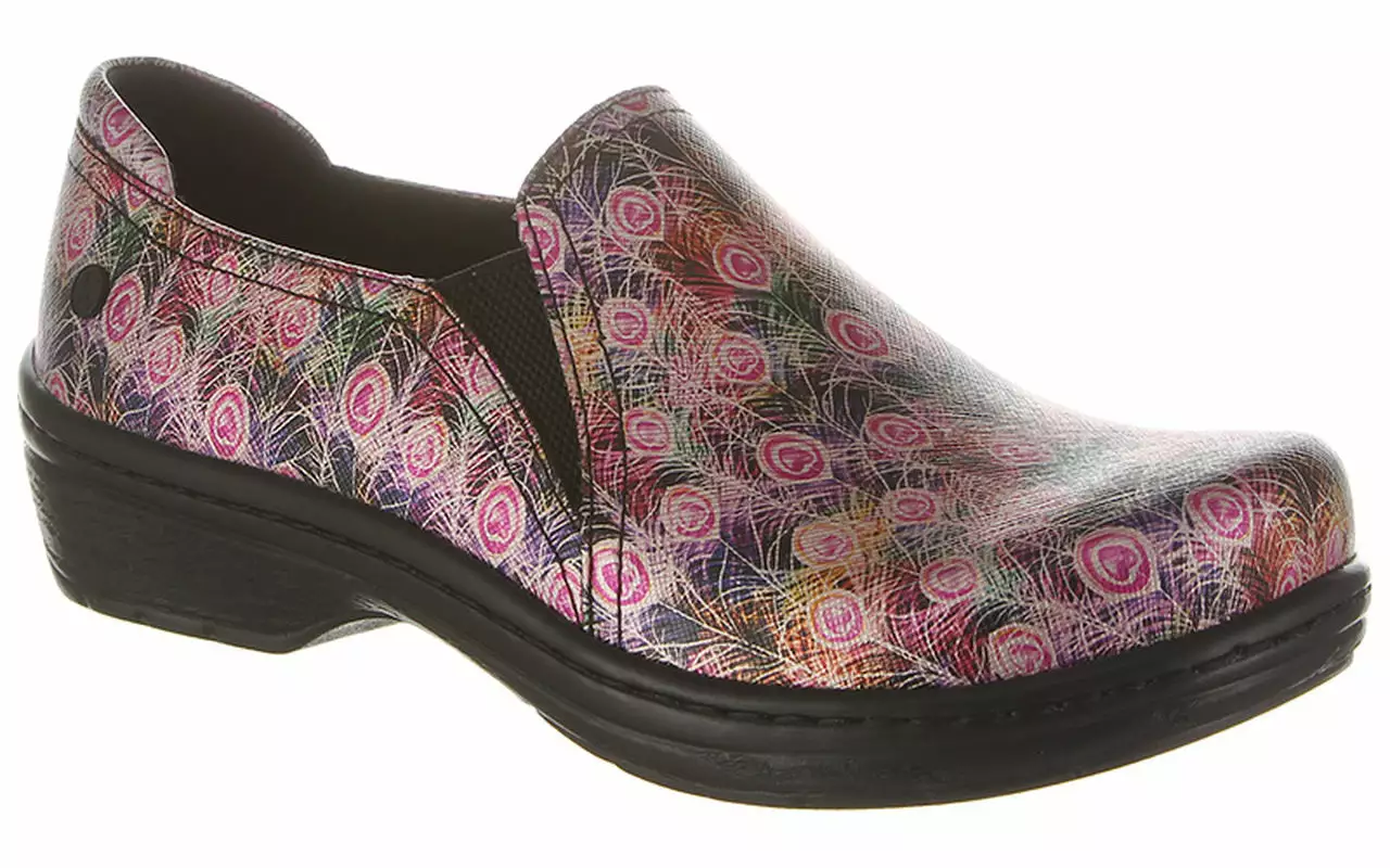 Klogs Footwear Moxy is a printed leather slip-on work shoe. These clogs have a microfiber insole, contoured footbed and durable and slip-resistant outsole. The slip-resistant TRUBaseâ„¢ outsole provides a superior grip and microfiber, latex-free TRUComfortâ„¢ insole cradles and cushions, helping to reduce foot, back, and leg pain. This closed-back clog has dual goring for comfort and is perfect for healthcare workers.