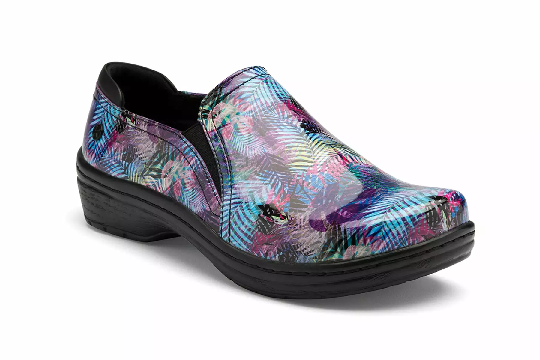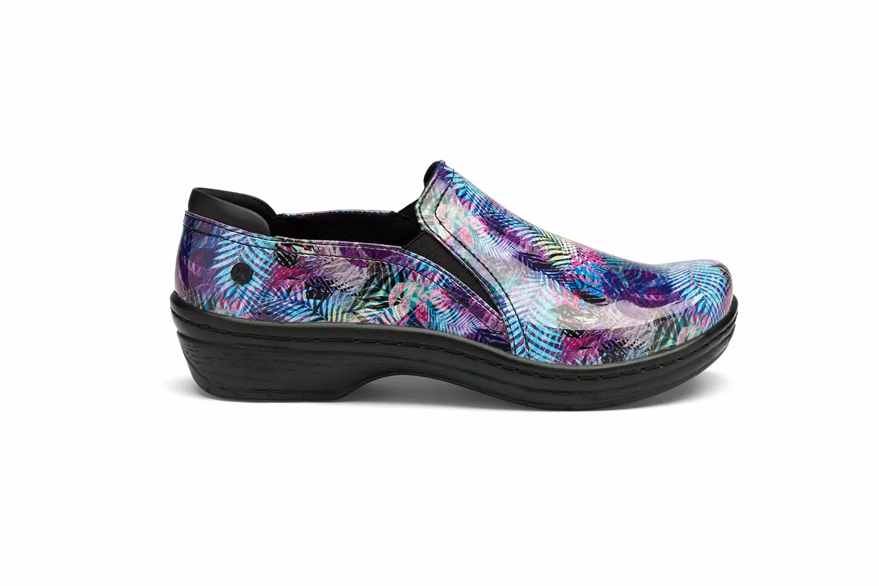 Klogs Footwear Moxy is a printed leather slip-on work shoe. These clogs have a microfiber insole, contoured footbed and durable and slip-resistant outsole. The slip-resistant TRUBaseâ„¢ outsole provides a superior grip and microfiber, latex-free TRUComfortâ„¢ insole cradles and cushions, helping to reduce foot, back, and leg pain. This closed-back clog has dual goring for comfort and is perfect for healthcare workers.