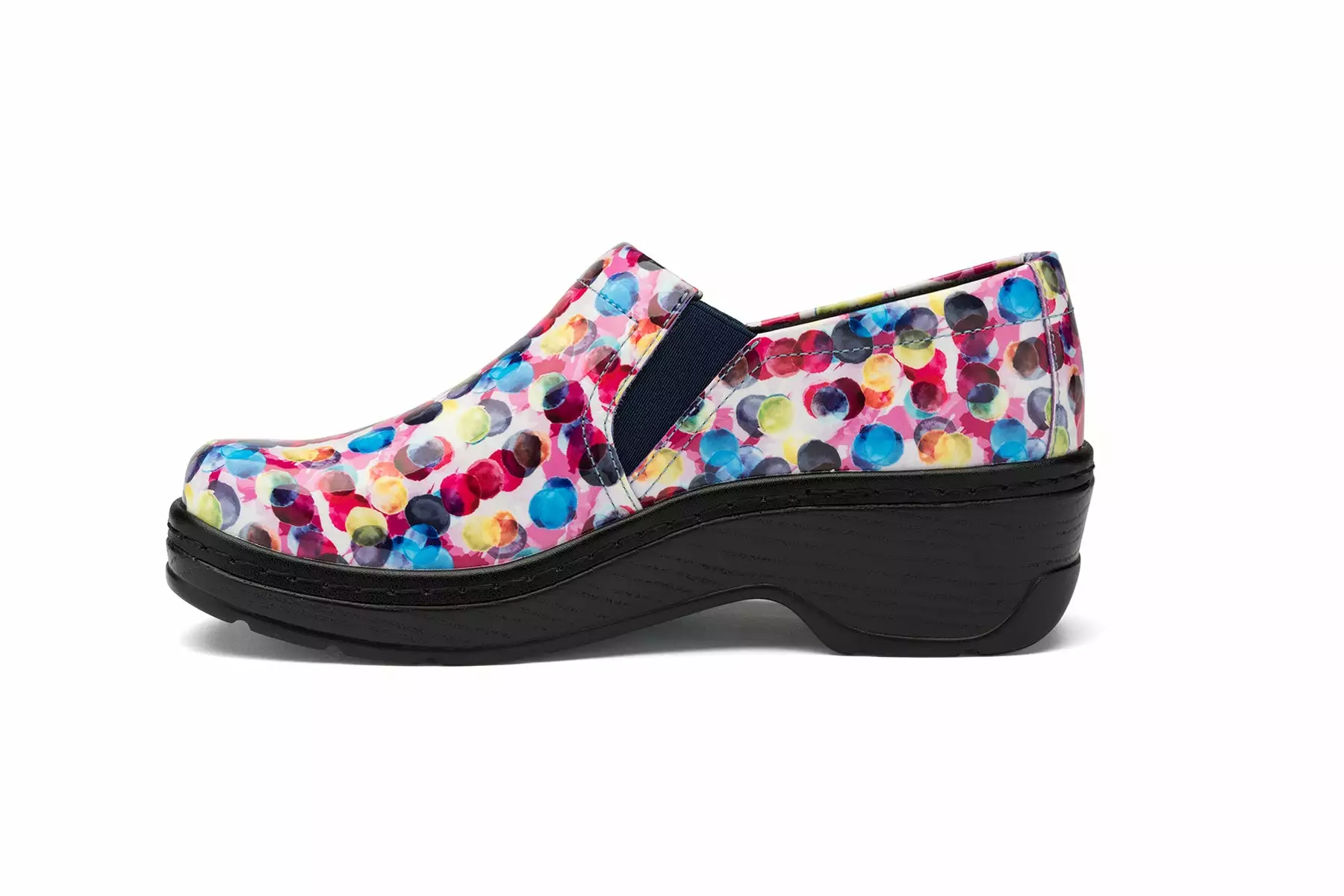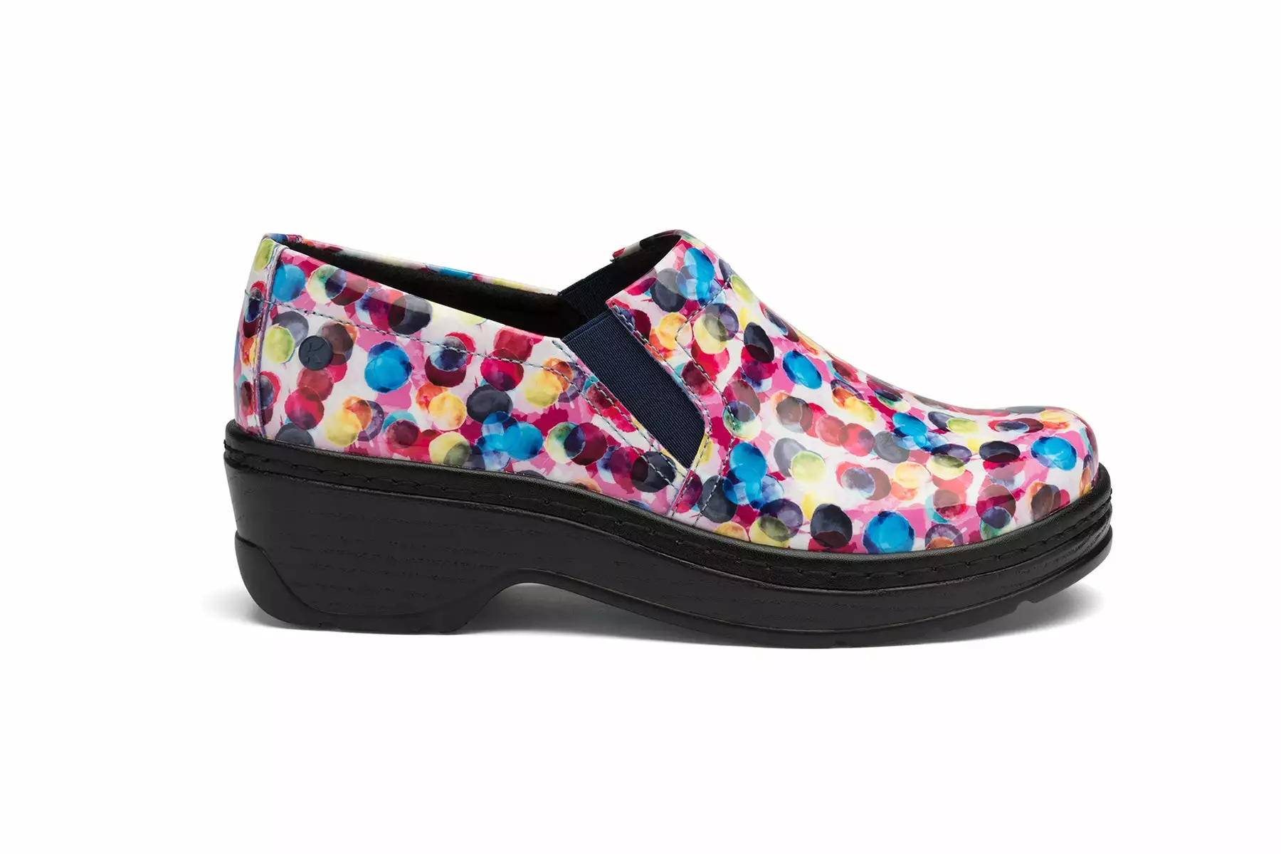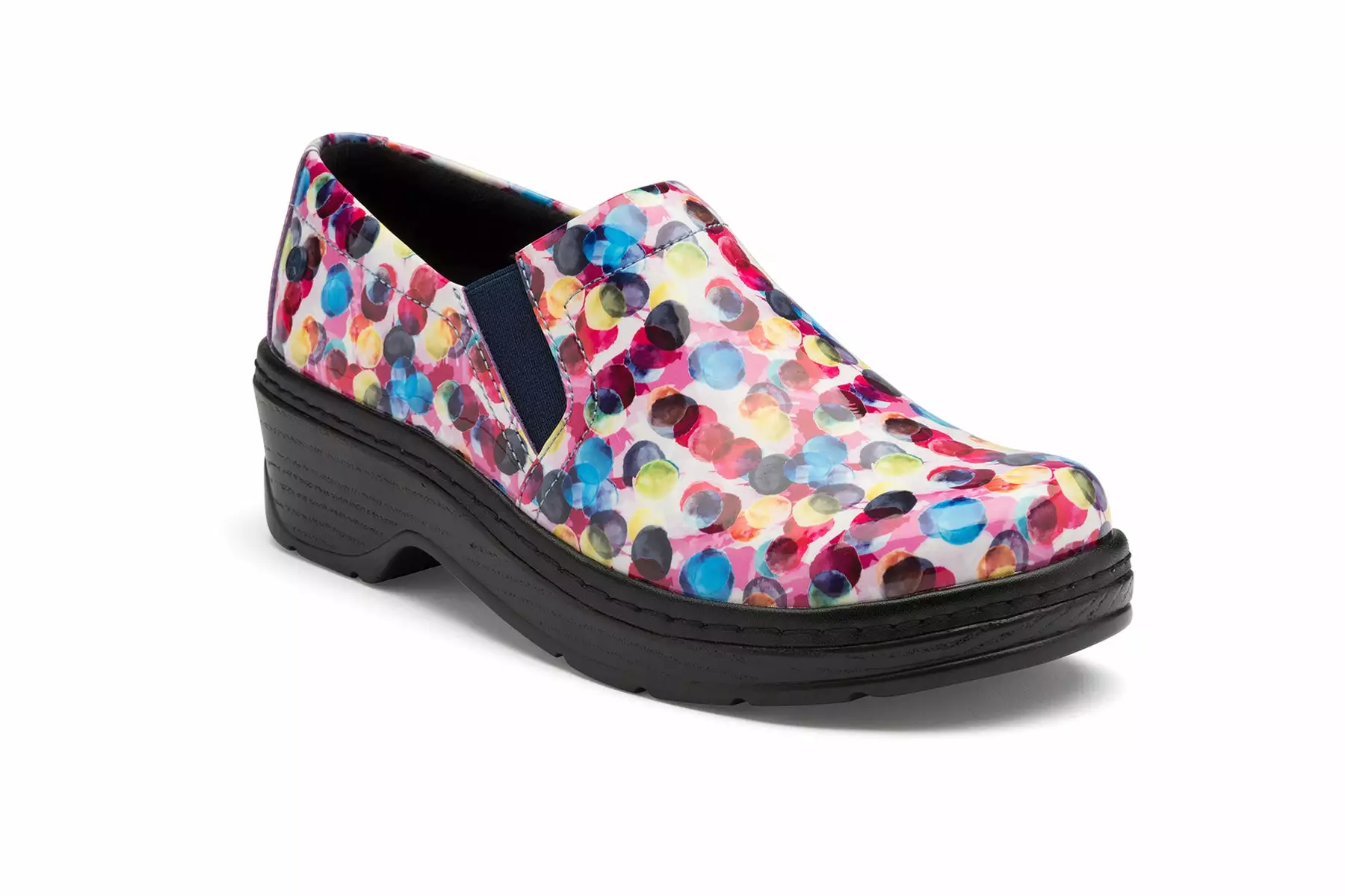Klogs Footwear Naples women’s clog provides all-day comfort for long hours on your feet. Dual side elastic gore panels help secure the foot in place, while the lightly padded back collar adds support. The removable footbed accommodates custom orthotics for a more personalized fit. The polyurethane outsole is slip-resistant perfect for wet and oily surfaces.