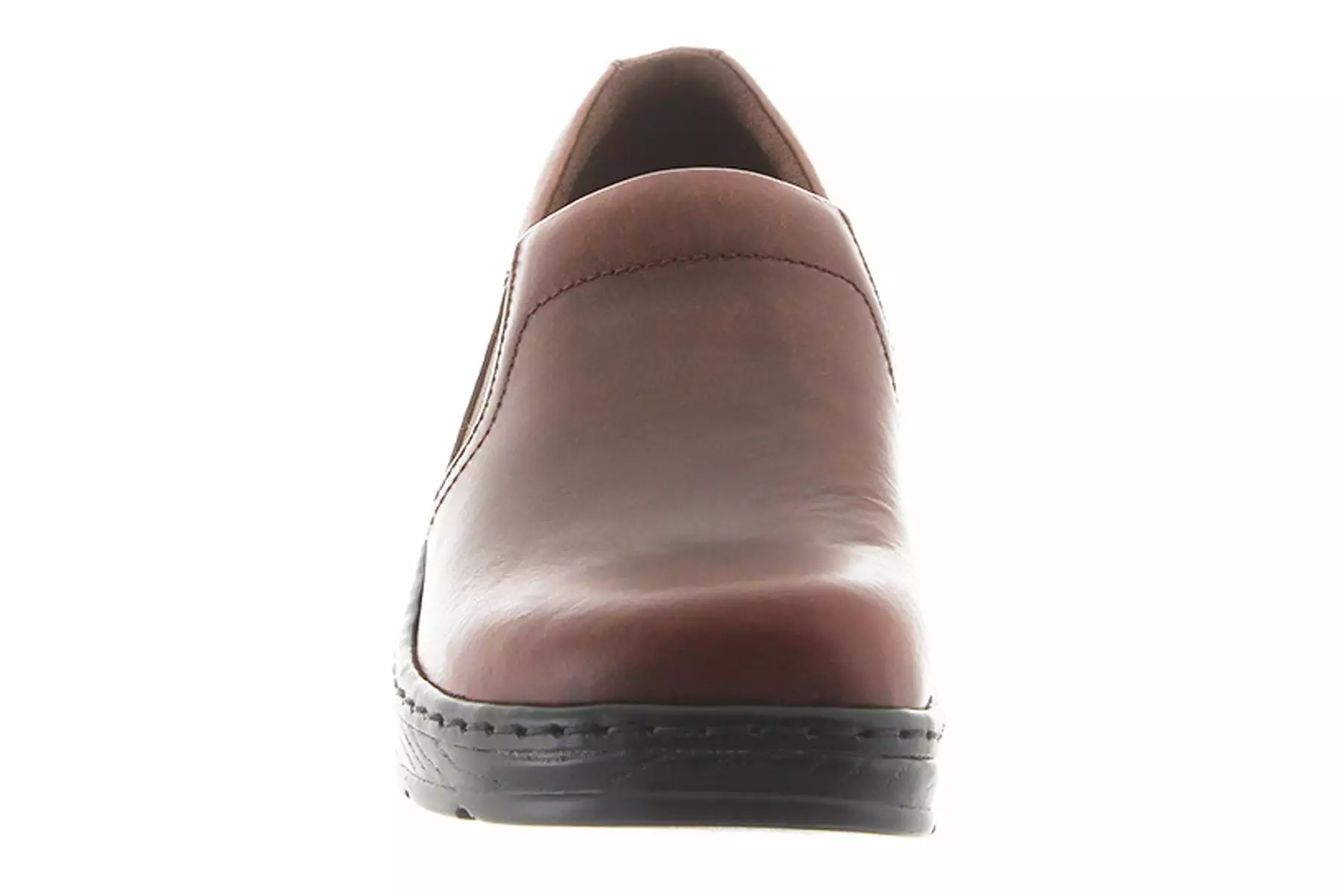 Klogs Footwear Naples women’s clog provides all-day comfort for long hours on your feet. Dual side elastic gore panels help secure the foot in place, while the lightly padded back collar adds support. The removable footbed accommodates custom orthotics for a more personalized fit. The polyurethane outsole is slip-resistant perfect for wet and oily surfaces.