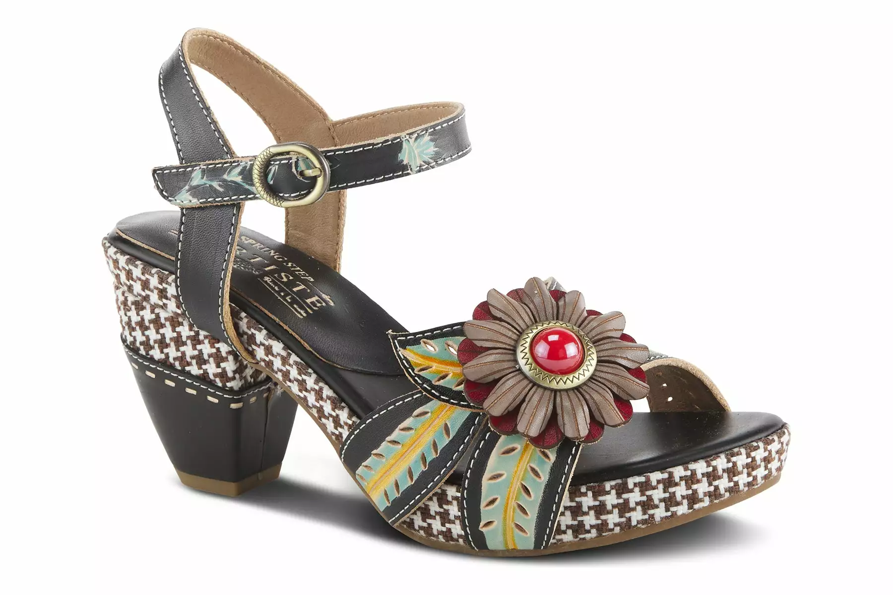 In this shoe, mixing patterns is what we do. This open-toe chunky heel makes standing out a breeze. Lightweight quarter strap sandal featuring an adjustable strap.