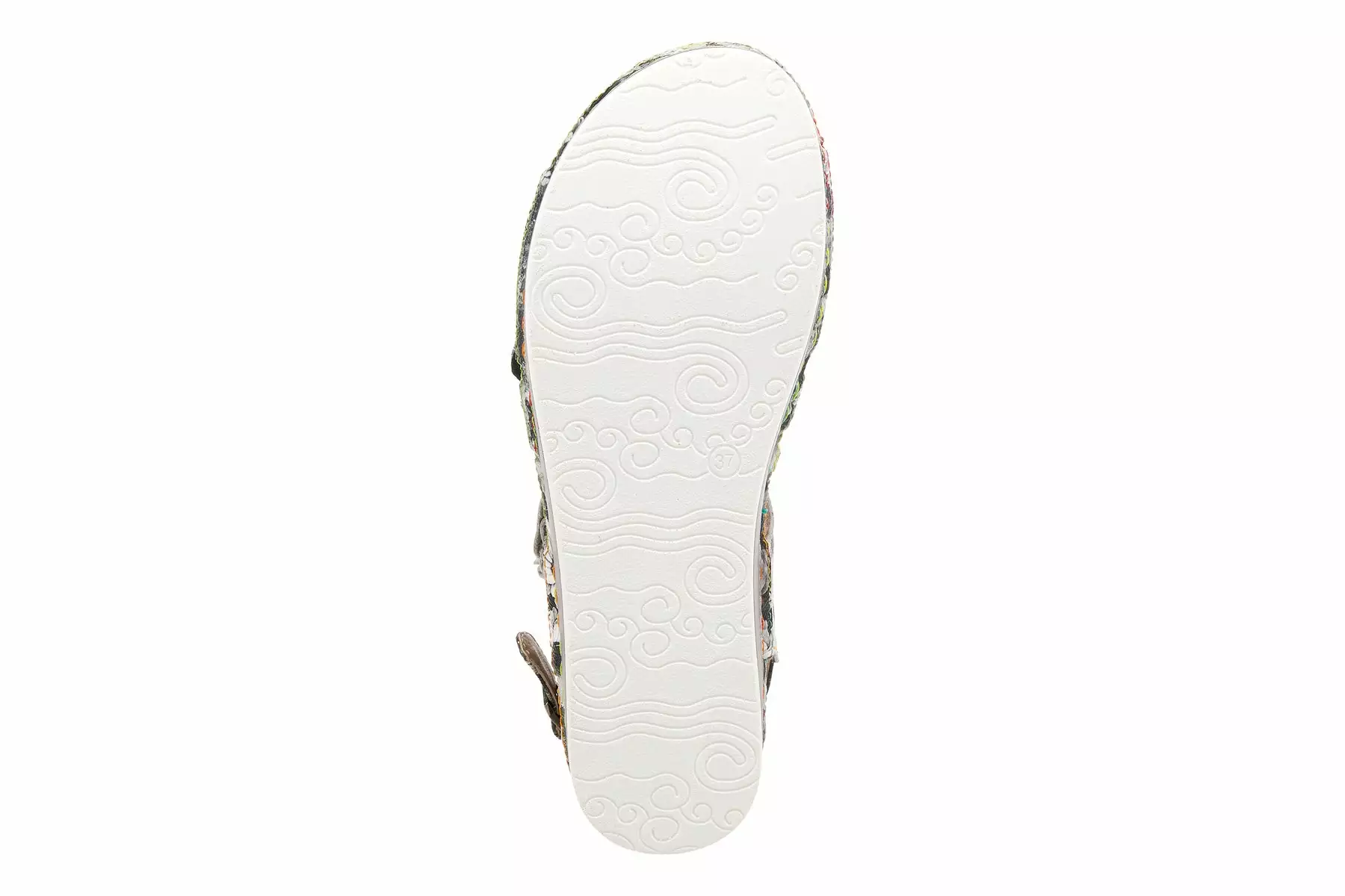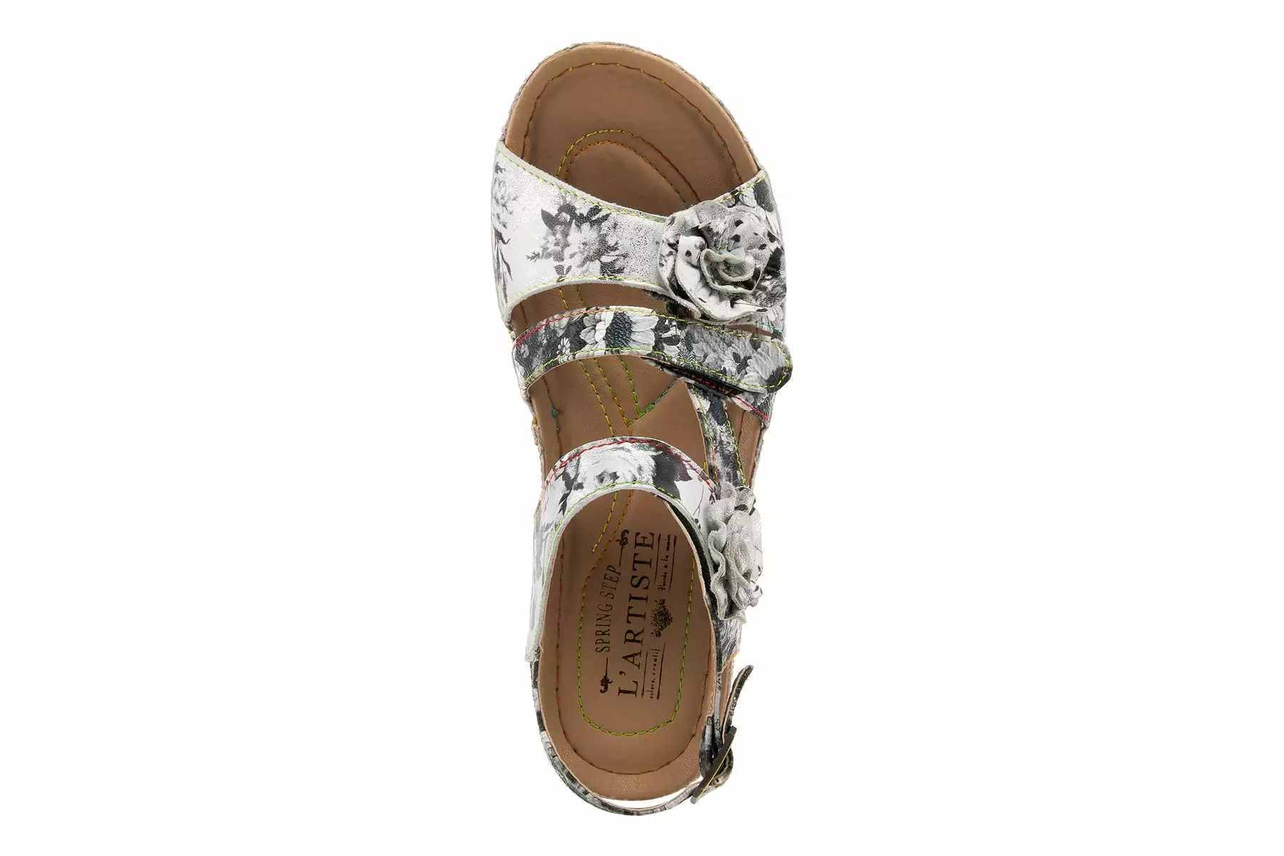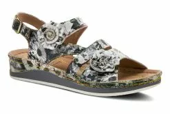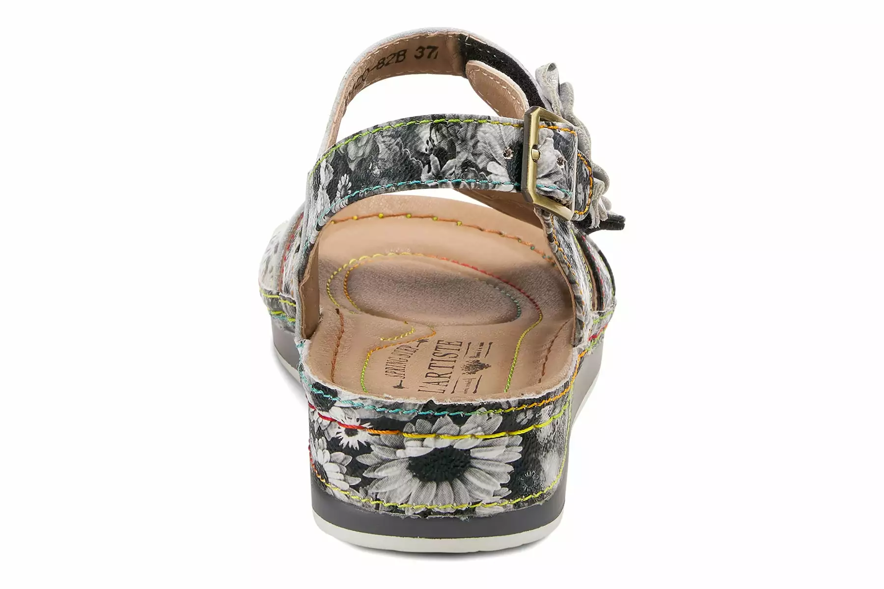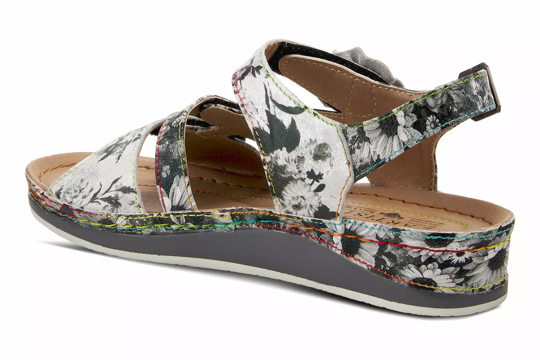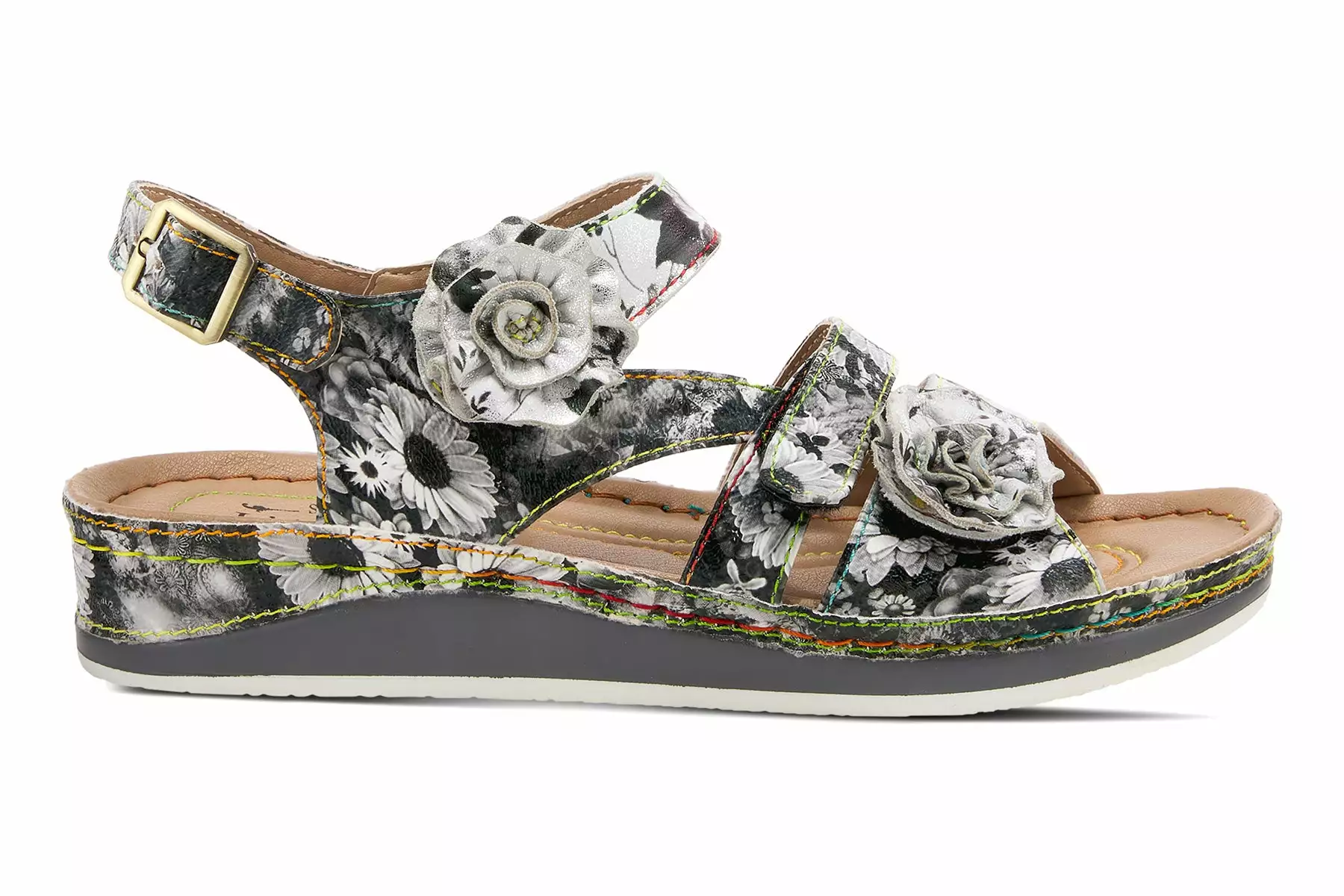 French-inspired design, a hand-painted leather sandal with triple adjustability. Featuring unique color blocking, two rosebuds and our signature rainbow stitching. This is one of our most loved constructions.