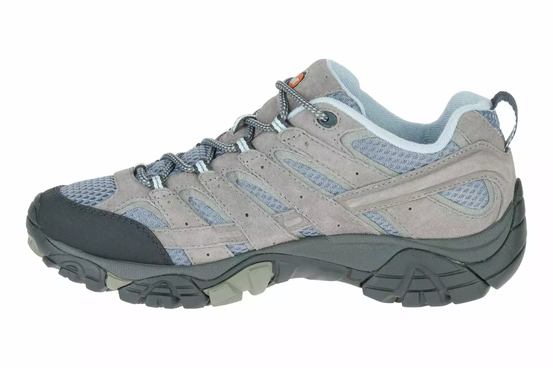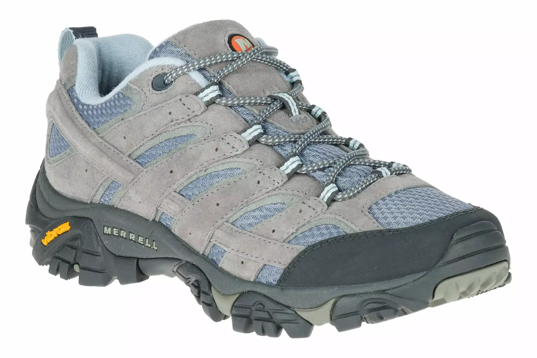 Adventure awaits in the women’s Merrell Moab 2 Vent hiker. The suede and breathable mesh upper with a closed-cell foam-cushioned tongue keeps debris out. The contoured EVA footbed features zonal arch and heel support matched with an EVA midsole for superior, performance comfort. Heel air cushioning absorbs shock and adds stability. The durable Vibram® rubber outsole provides enhanced traction and grip on rugged terrain.