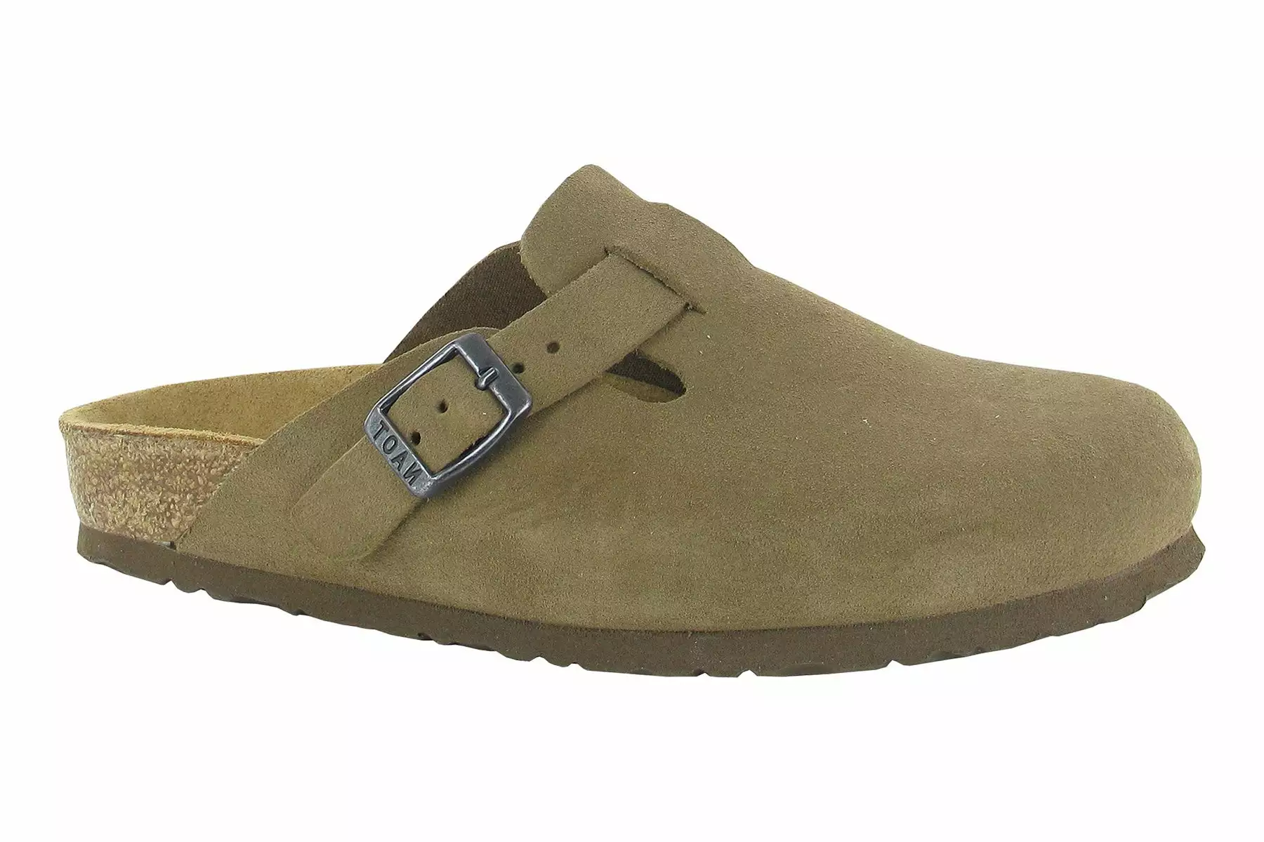 The Spring is a comfortable classic slip-on clog. Naot’s anatomic cork & latex footbed is wrapped in a pampering suede and molds to the shape of the foot with wear. The Classic Collection features a 1.25″ EVA sole.
