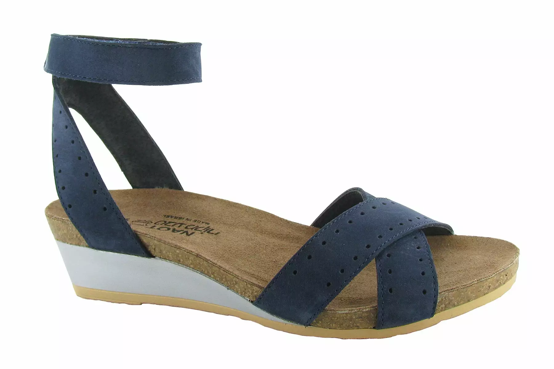 Warm weather style meets ultimate comfort in the women’s Naot Wand sandal. The strappy leather upper features circular cut outs and an adjustable hook and loop strap for a customized fit. The anatomic cork and latex footbed molds to the shape of your foot for a personalized fit, while the durable outsole provides traction and stability.