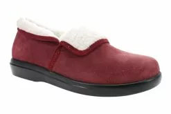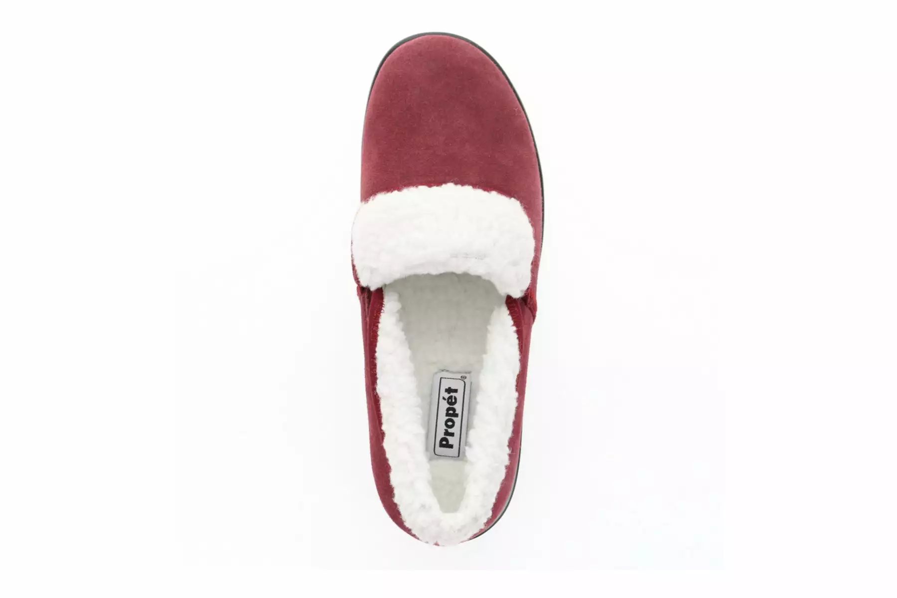 Propet Colbie is a warm and roomy slipper. Features include a suede upper with faux fur lining, slip-on construction, removable footbed and PU outsole. A high density PU foam ensures a cooler footbed, while the warm faux fur trim keeps feet warm during cold weather days.