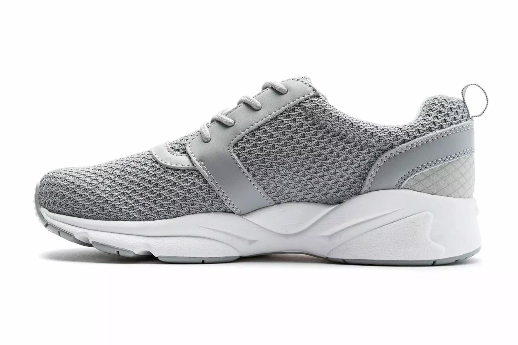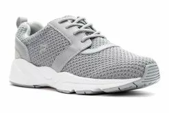 Propet Stability X is a comfortable active shoe. These chic sneakers have mesh and leather uppers, removable PU insoles, EVA midsoles and rubber outsoles. A brushed nylon lining wicks away moisture, while a padded tongue and collar adds all-day comfort.