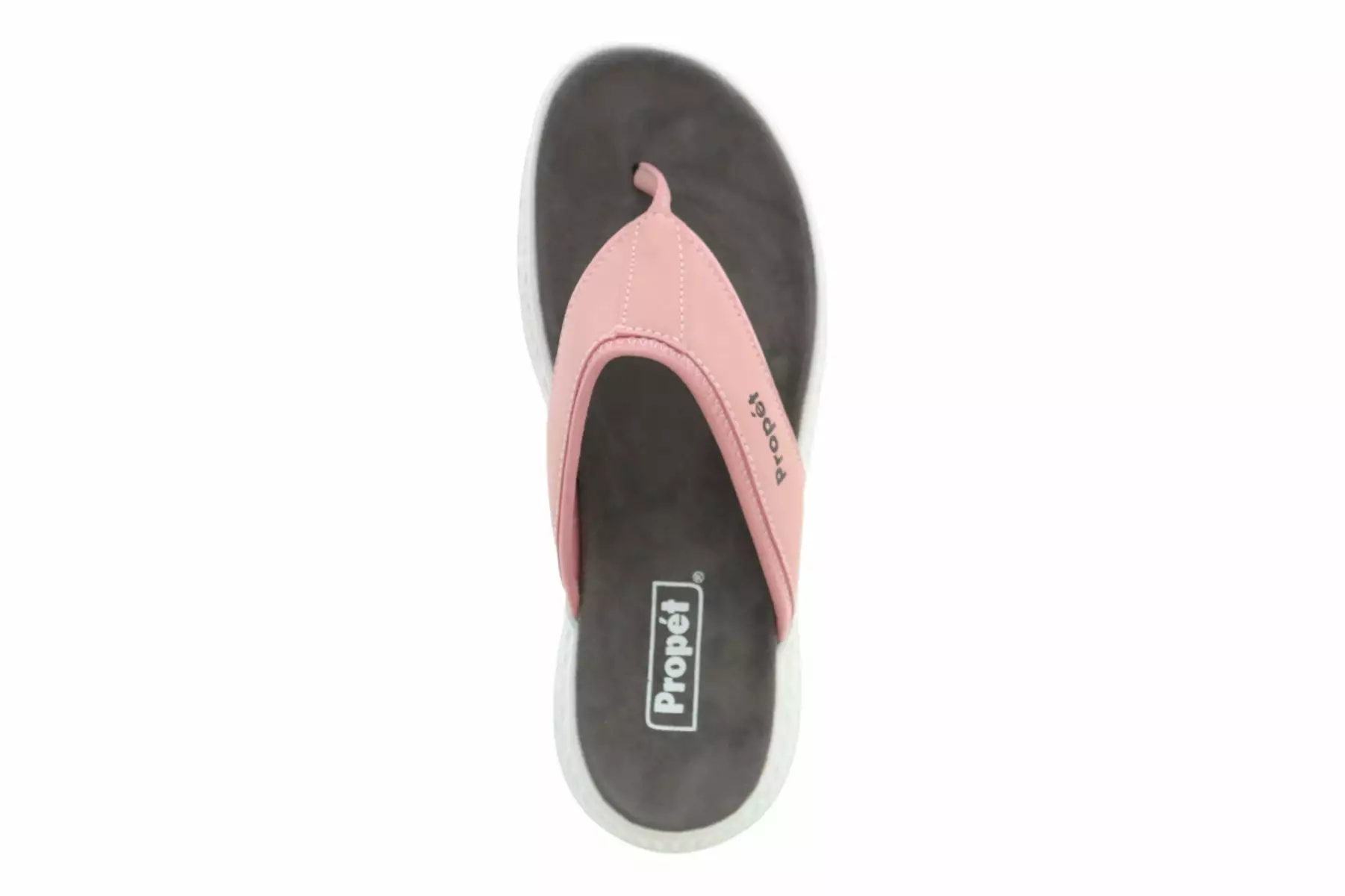 The Propet Travelactiv FT lightweight thong with microfiber strap and comfortable toe post. Cushioning EVA footbed with microfiber lining offers all-day comfort. The lightweight outsole combines EVA and rubber for long-lasting wear and a deep tread pattern for traction.