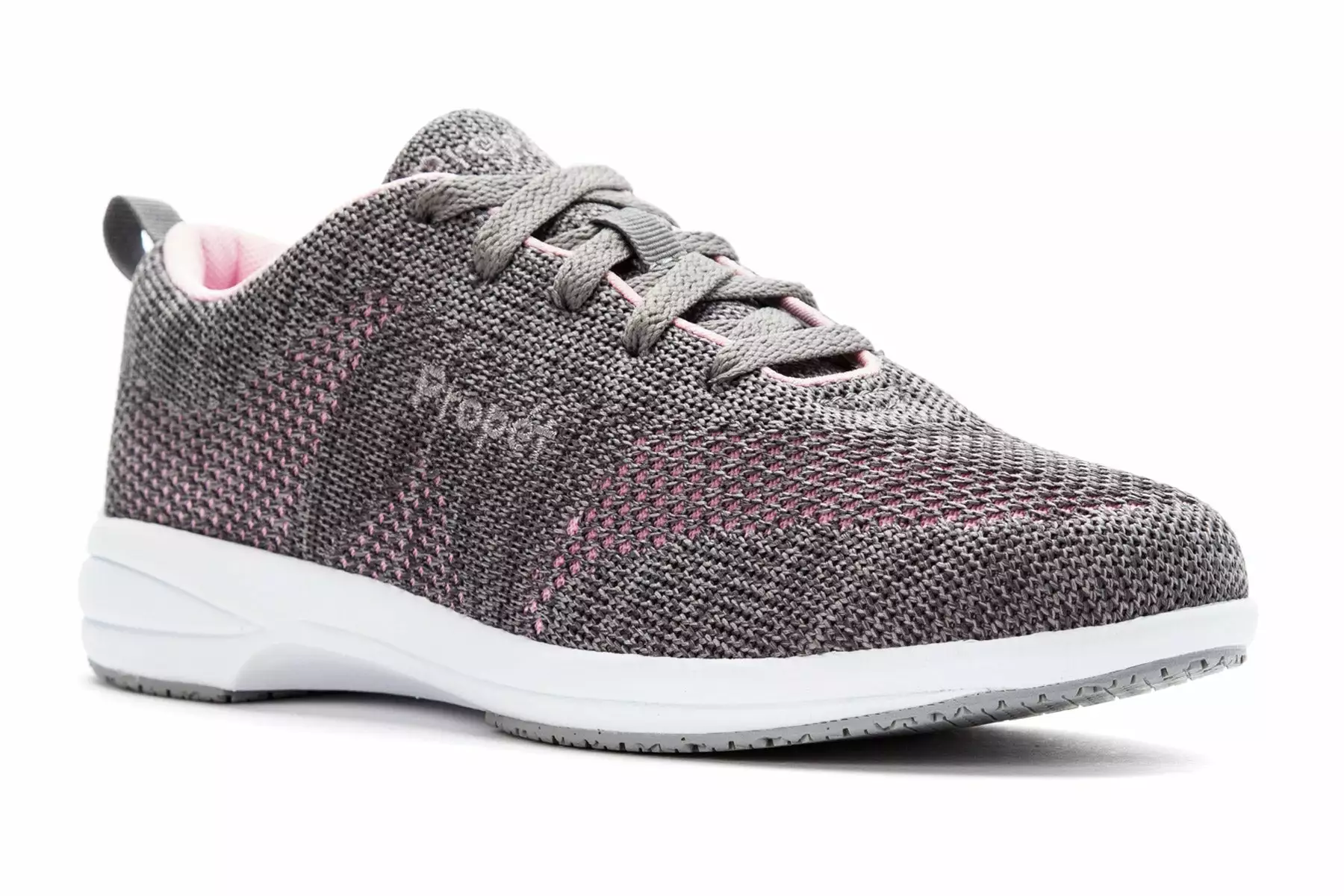 Get moving in the women’s Propet Washable Walker Evolution. The molded EVA footbed adds cushioning for long-lasting comfort and is removable to accommodate custom orthotics for a more personalized fit. The rubber outsole delivers maximum traction and stability.