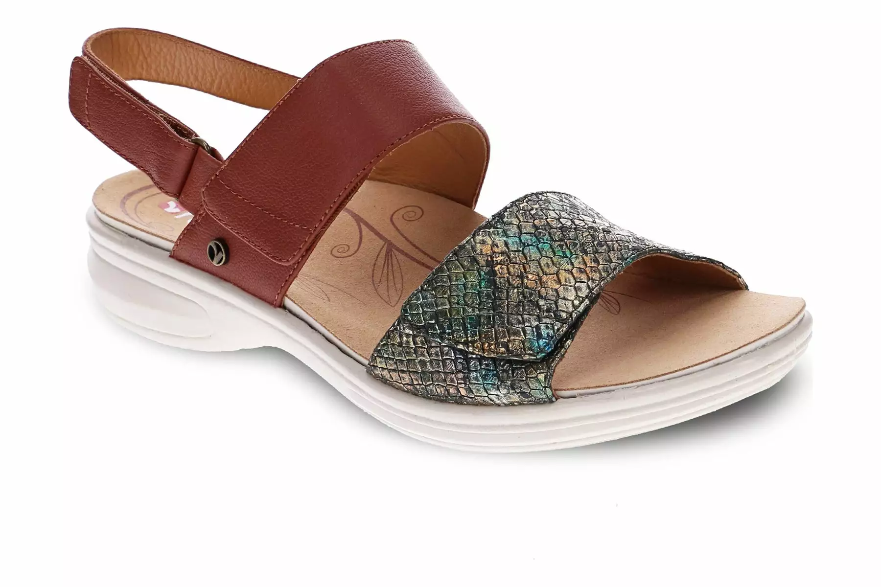 Revere Como is a trendy and comfortable sandal. These chic warm weather shoes have leather uppers and linings, adjustable straps and a slip-resistant outsole. A removable comfort footbed has built-in arch support, while matching strap extensions provide support for wide feet.