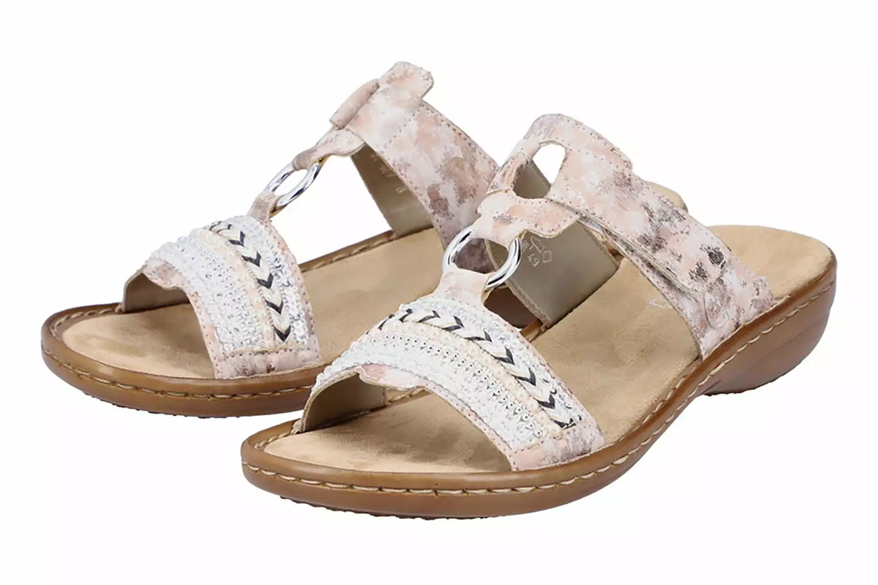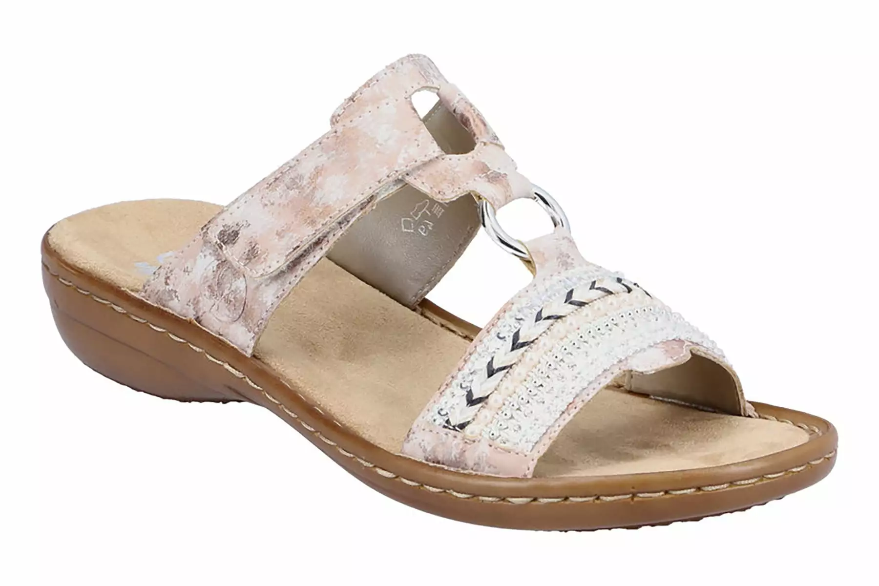 This hook-and-loop adjustable slide is an attractive casual sandal that combines pretty details and padded walking comfort! Enjoy this look with your favorite warm-weather outfits, and go anywhere near or far in terrific style.