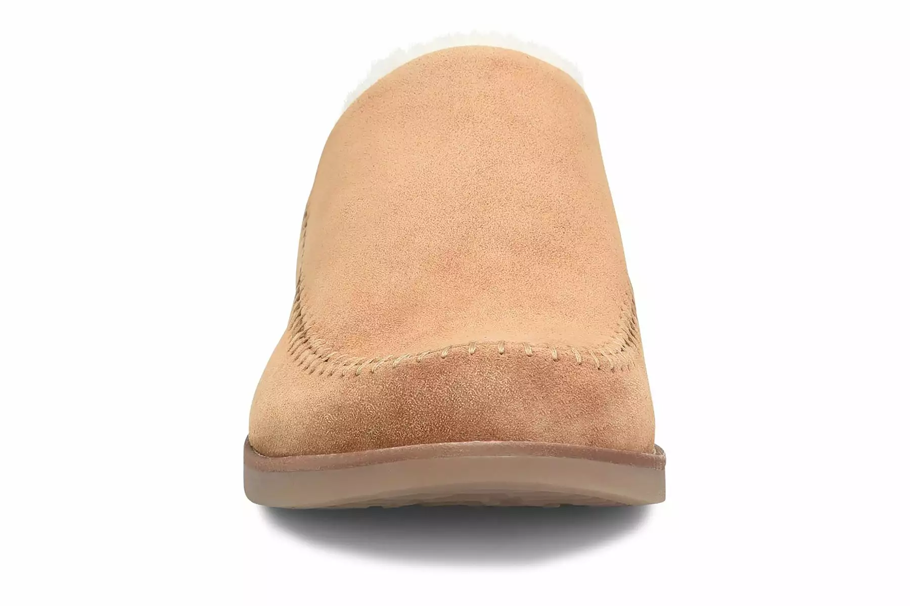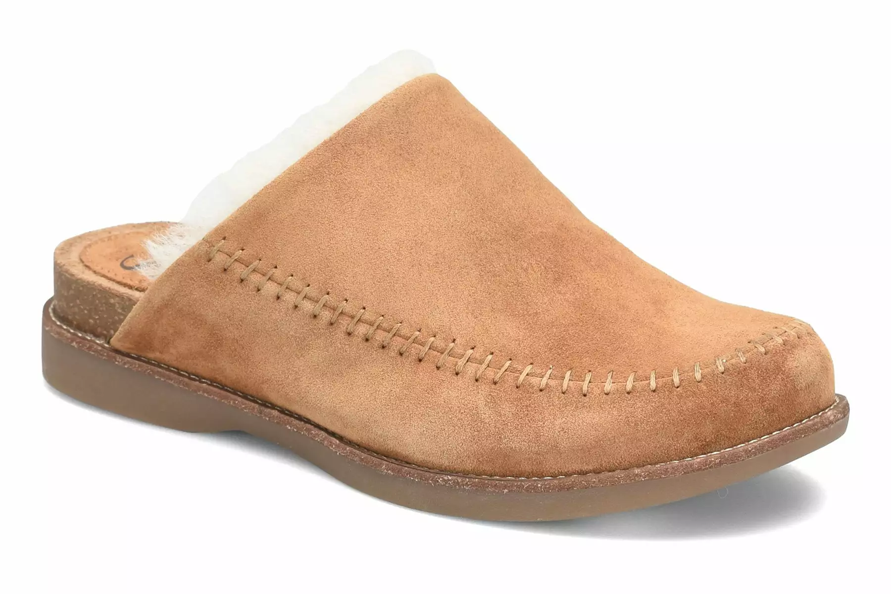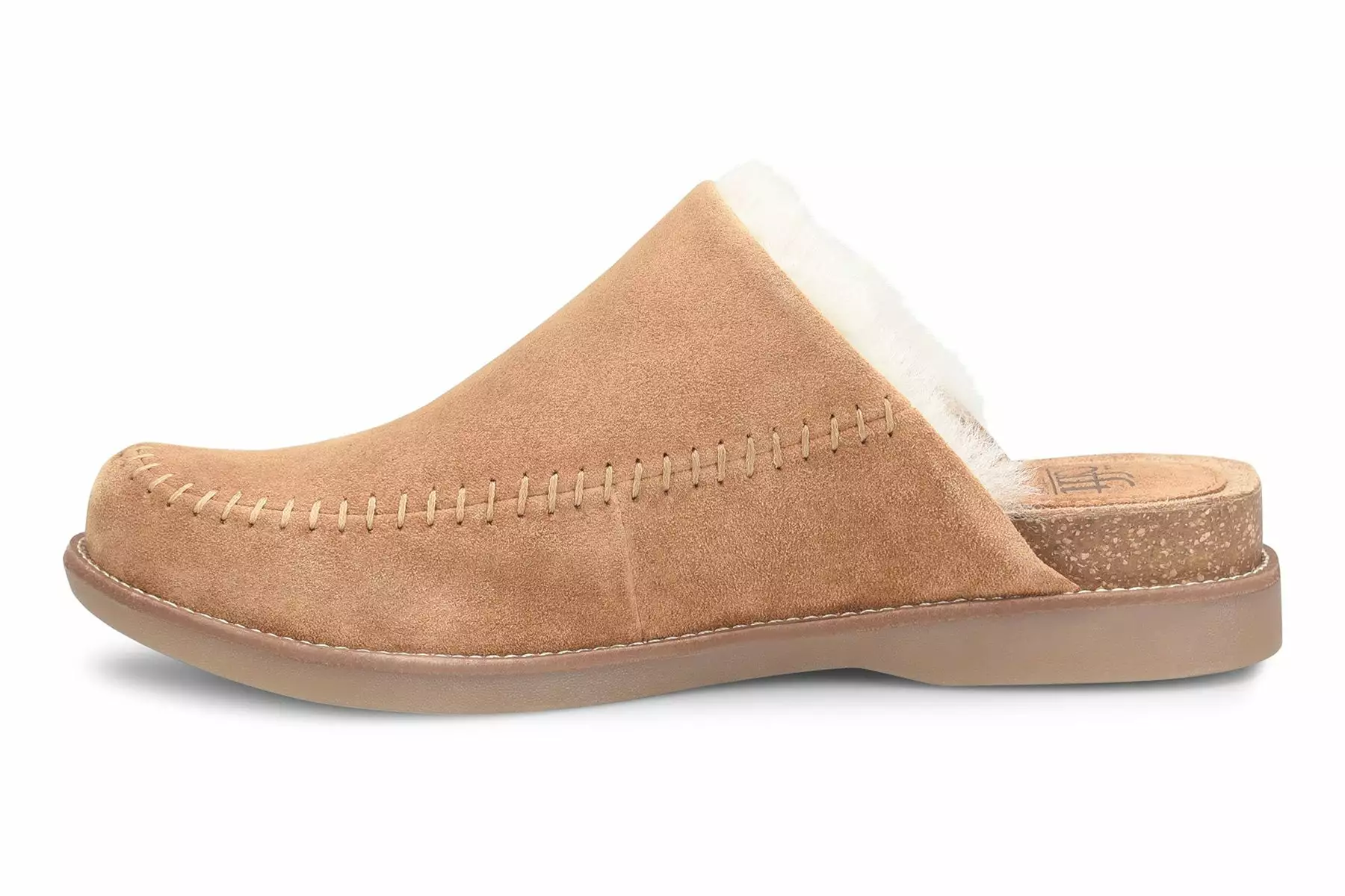 Sofft Bellflower is a warm and cozy mule clog. Prominent features include luxe Italian suede uppers, genuine shearling lining and a flexible TPR outsole. A cushioned cork footbed, accent stitching and 1 ½ inch heel height makes these comfortable mules a hit.