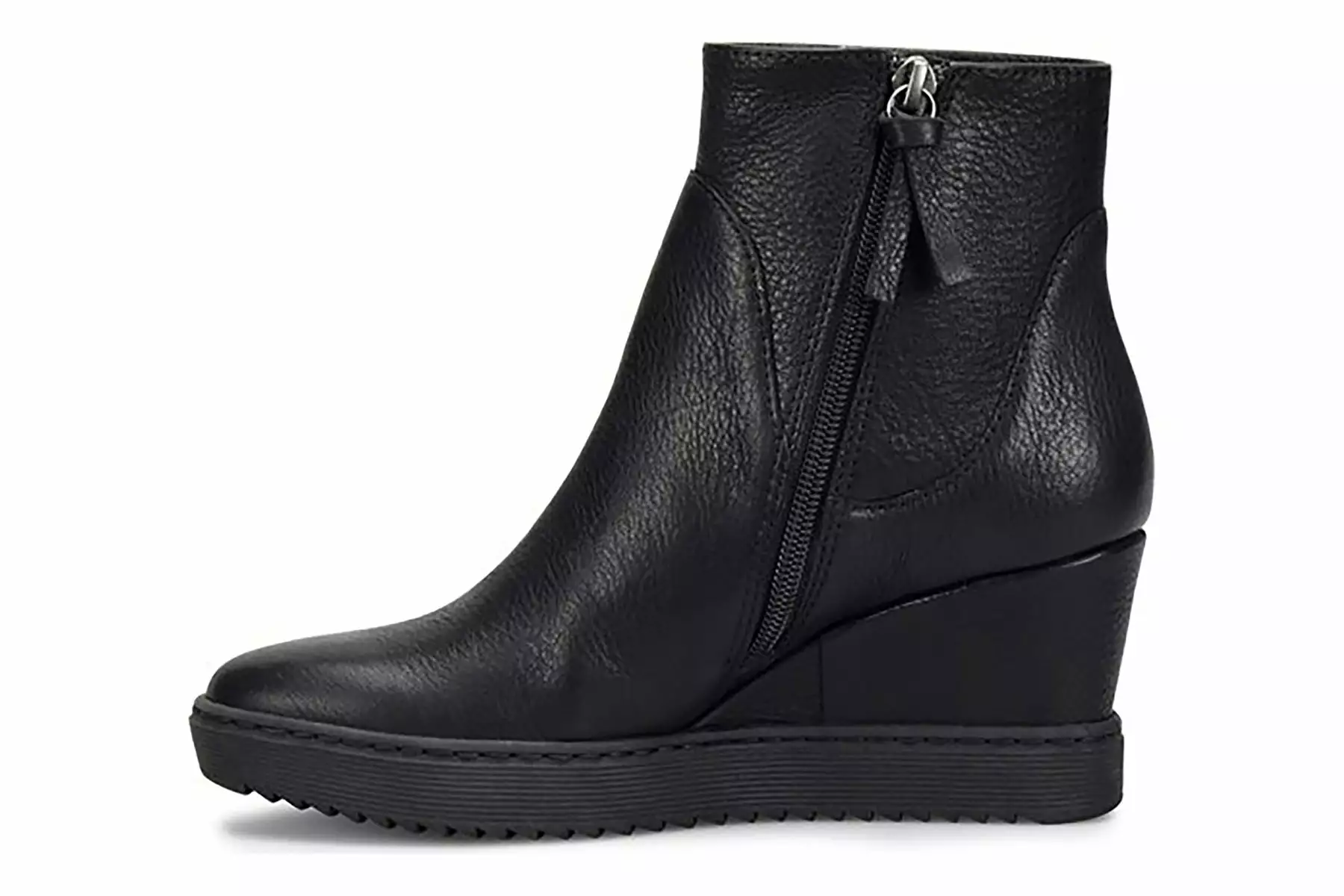 Sofft Shary is a warm and versatile wedge boot. These outdoor shoes have waterproof leather and suede uppers, inside zipper and lightweight TPR outsole. Other features include a soft microfiber lining, cushioned footbed, 2 ¾ inch wrapped wedge heel and 7 ½ inch shaft height.