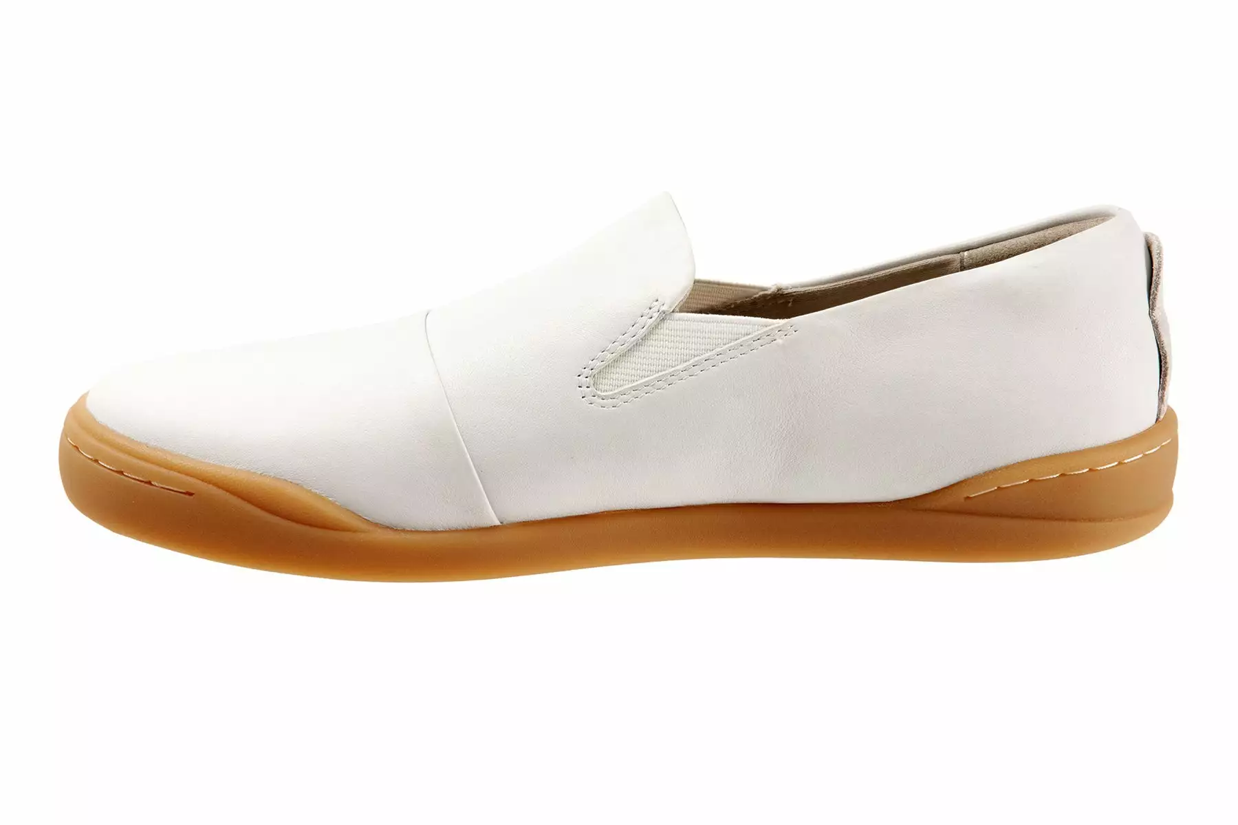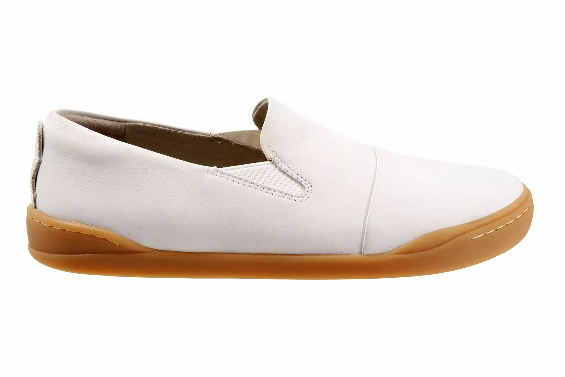 Playful asymmetry and a casual sport vibe influences the Alexadnria, a no fuss, slip on style. A removable, cushioned footbed with built-in arch support allows comfort with every step. Soft, supple leathers refine the Alexandria low pro sneaker that is a year-round staple.