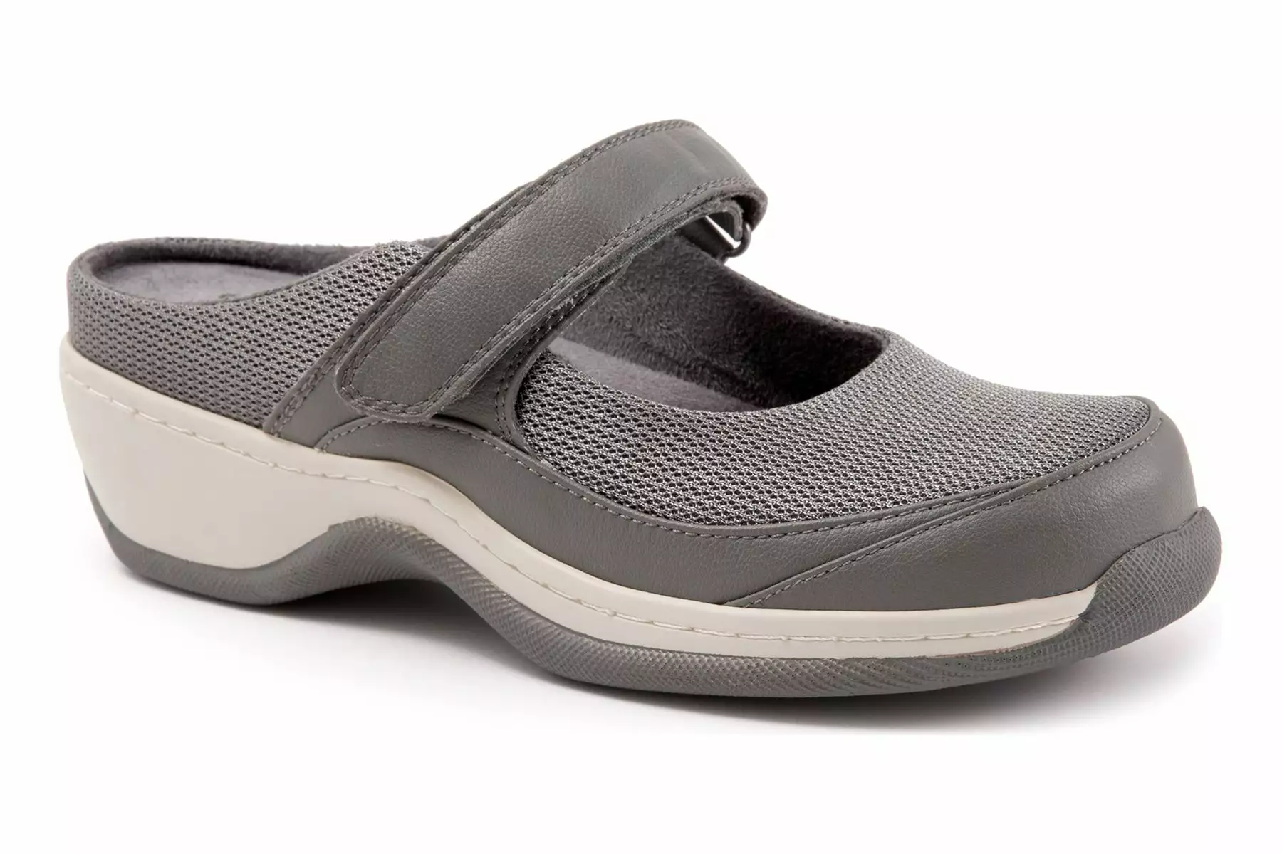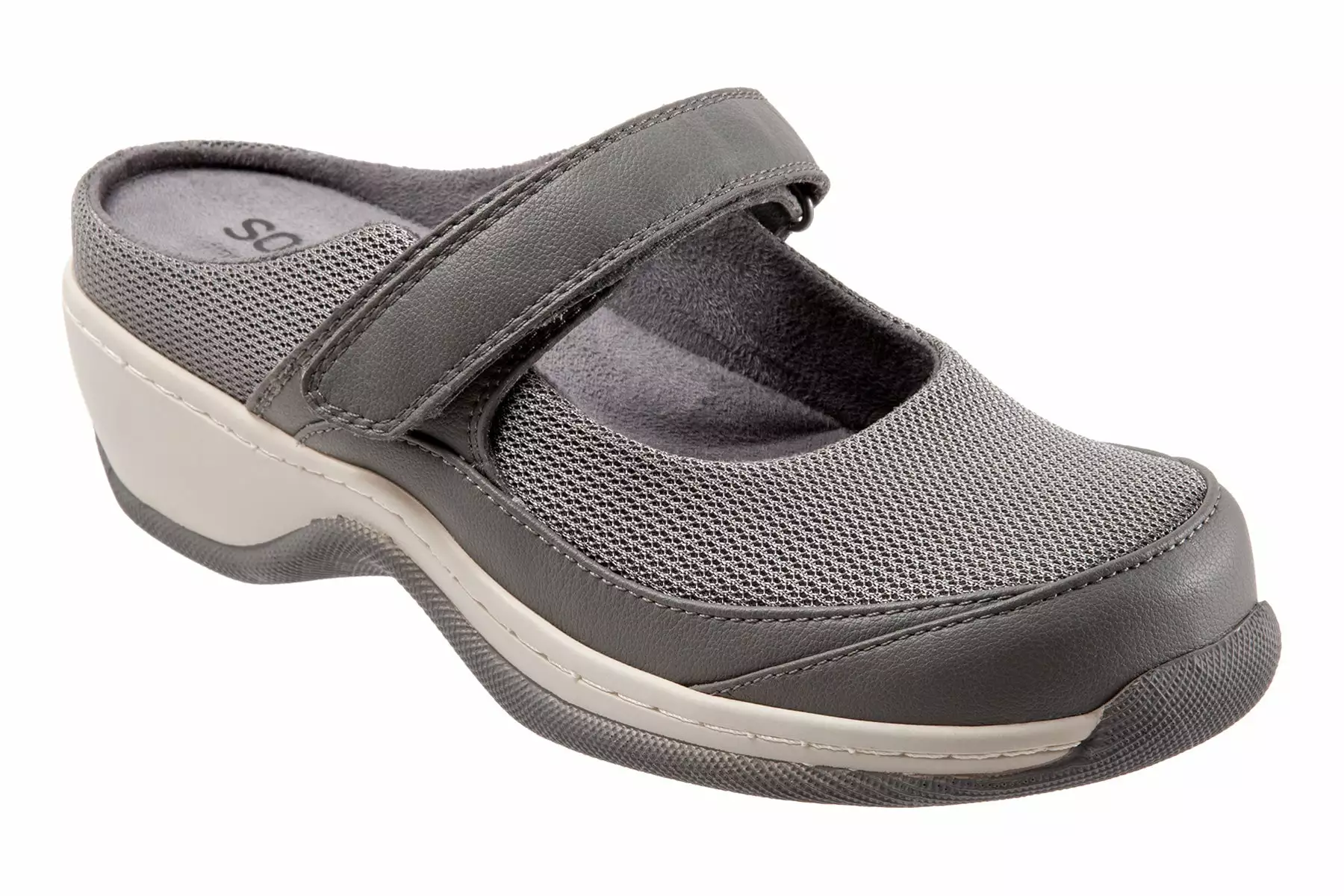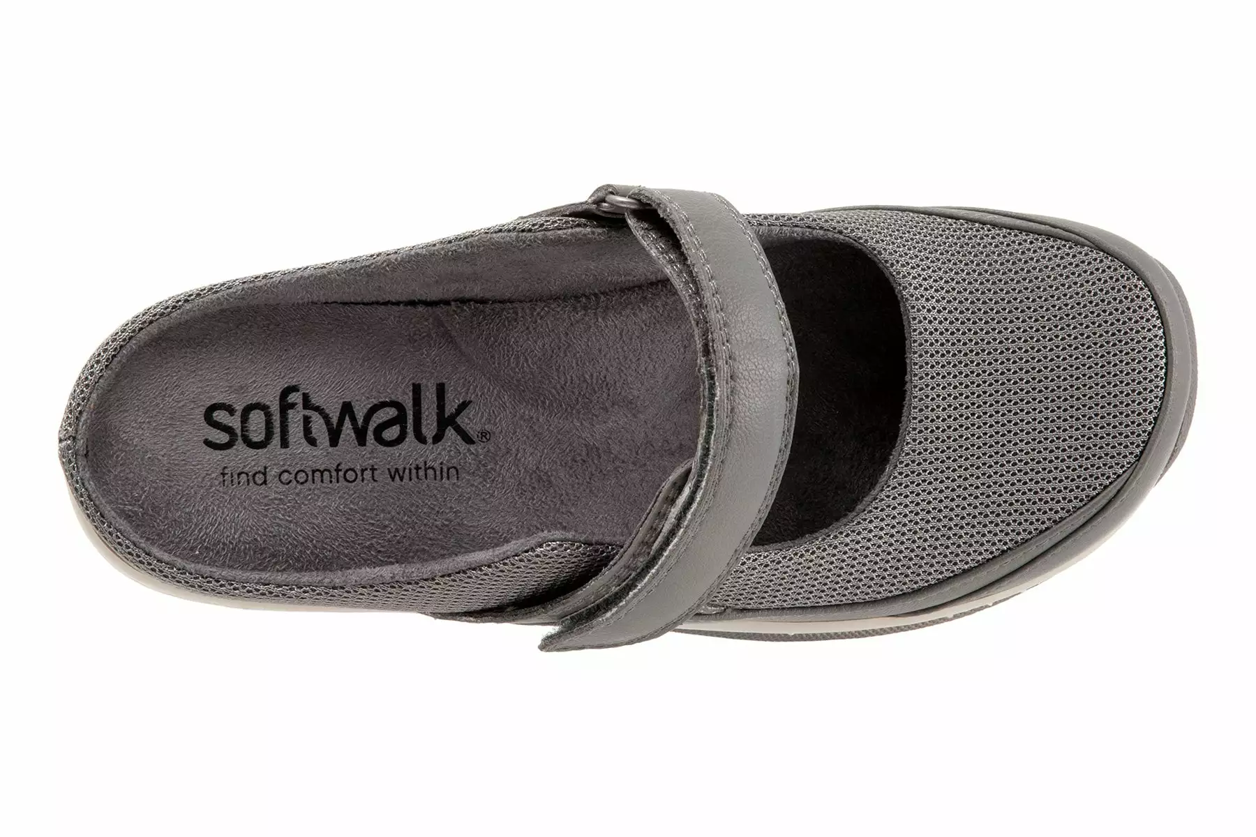 Softwalk Arcadia is an adjustable and versatile Mary Jane clog. A mesh leather upper, removable footbed, cushioned insole and PU outsole makes these clogs. An instep hook and loop strap provides support, while a memory foam cushioned midsole provides added comfort.