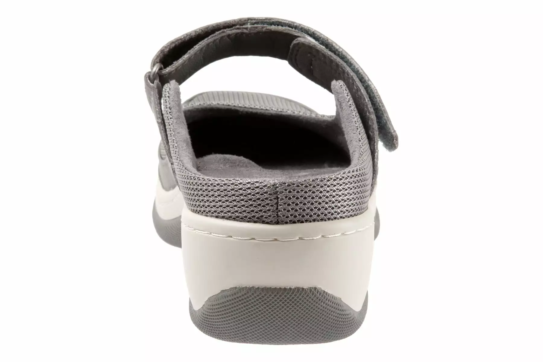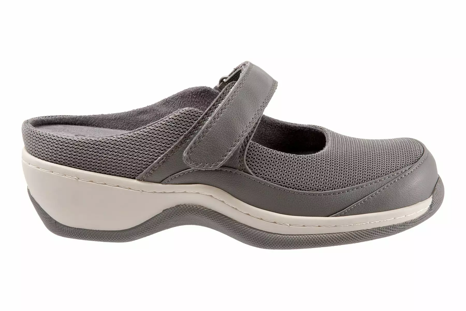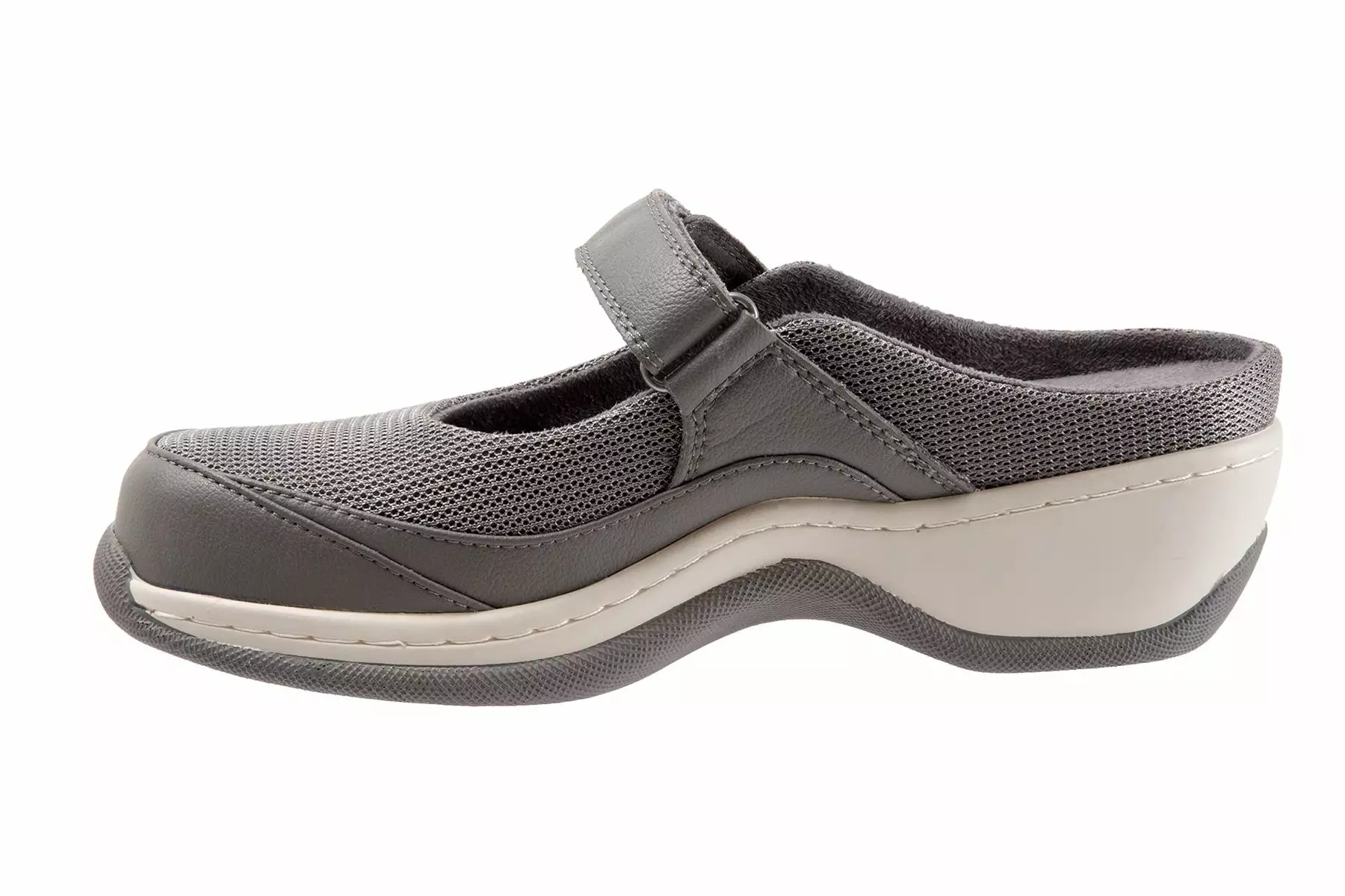 Softwalk Arcadia is an adjustable and versatile Mary Jane clog. A mesh leather upper, removable footbed, cushioned insole and PU outsole makes these clogs. An instep hook and loop strap provides support, while a memory foam cushioned midsole provides added comfort.