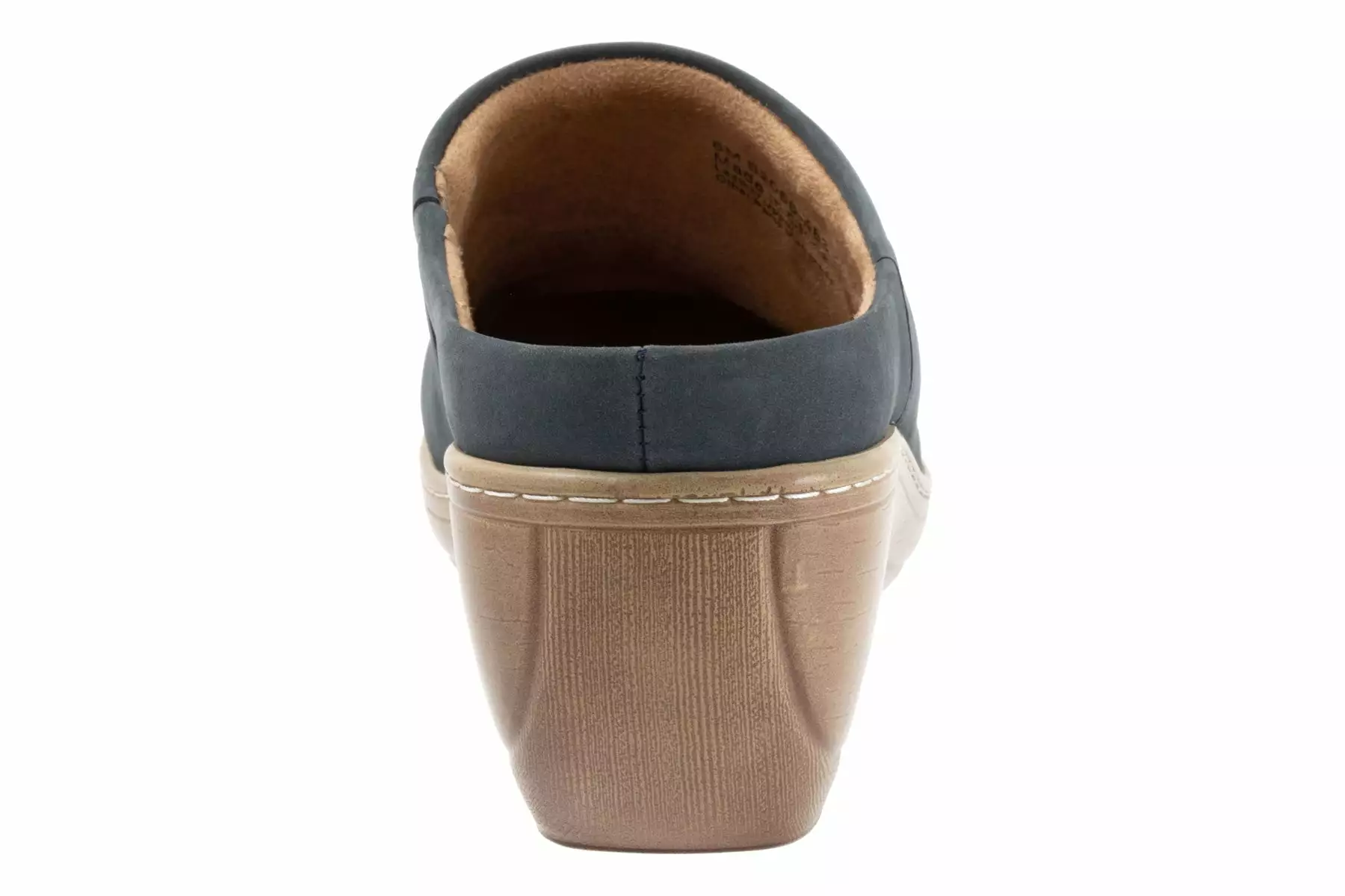 Softwalk Madison is a curvy platform wedge. These clogs have full grain leather uppers, removable footbed, elastic goring and a sturdy rubber outsole. A supportive steel or iron shank, microfiber footbed lining and 2 ¼ inch platform wedge heel will make these clogs a new favorite.