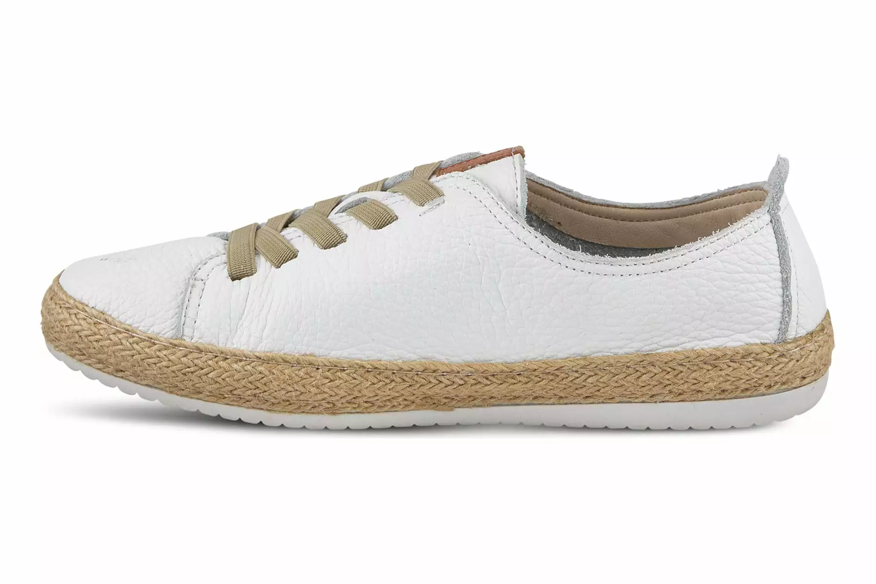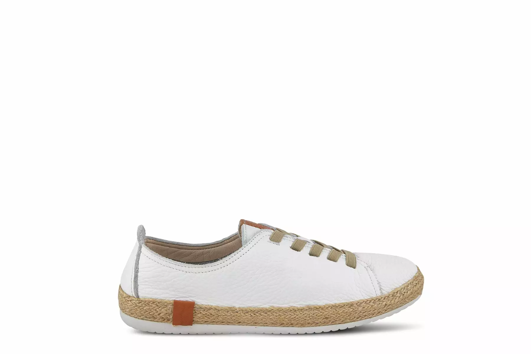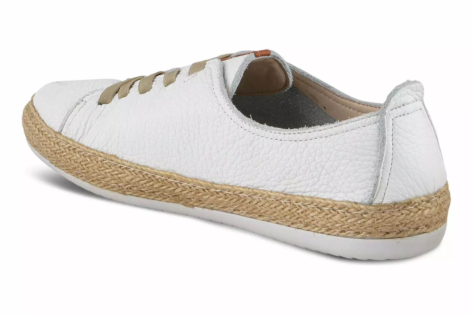 Here is your vacation-ready staple. Crafted on a jute-trimmed sole, it combines the effortless style of an espadrille with the wearability of your favorite sneaker. Great adjustable laces. Partner it with denim shorts or flowing maxi dress. Comes in 3 types of materials pebbled leather, metallic leather and nubuck.