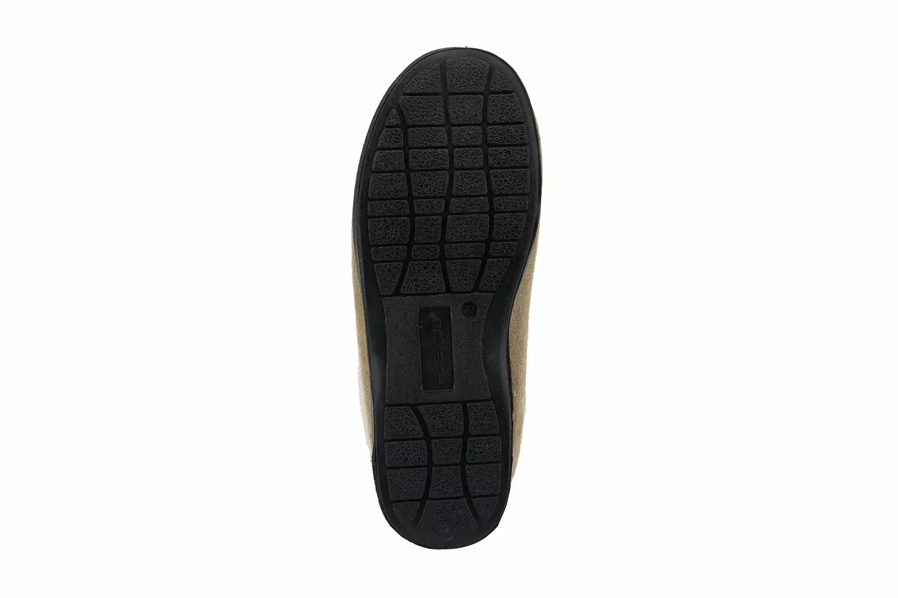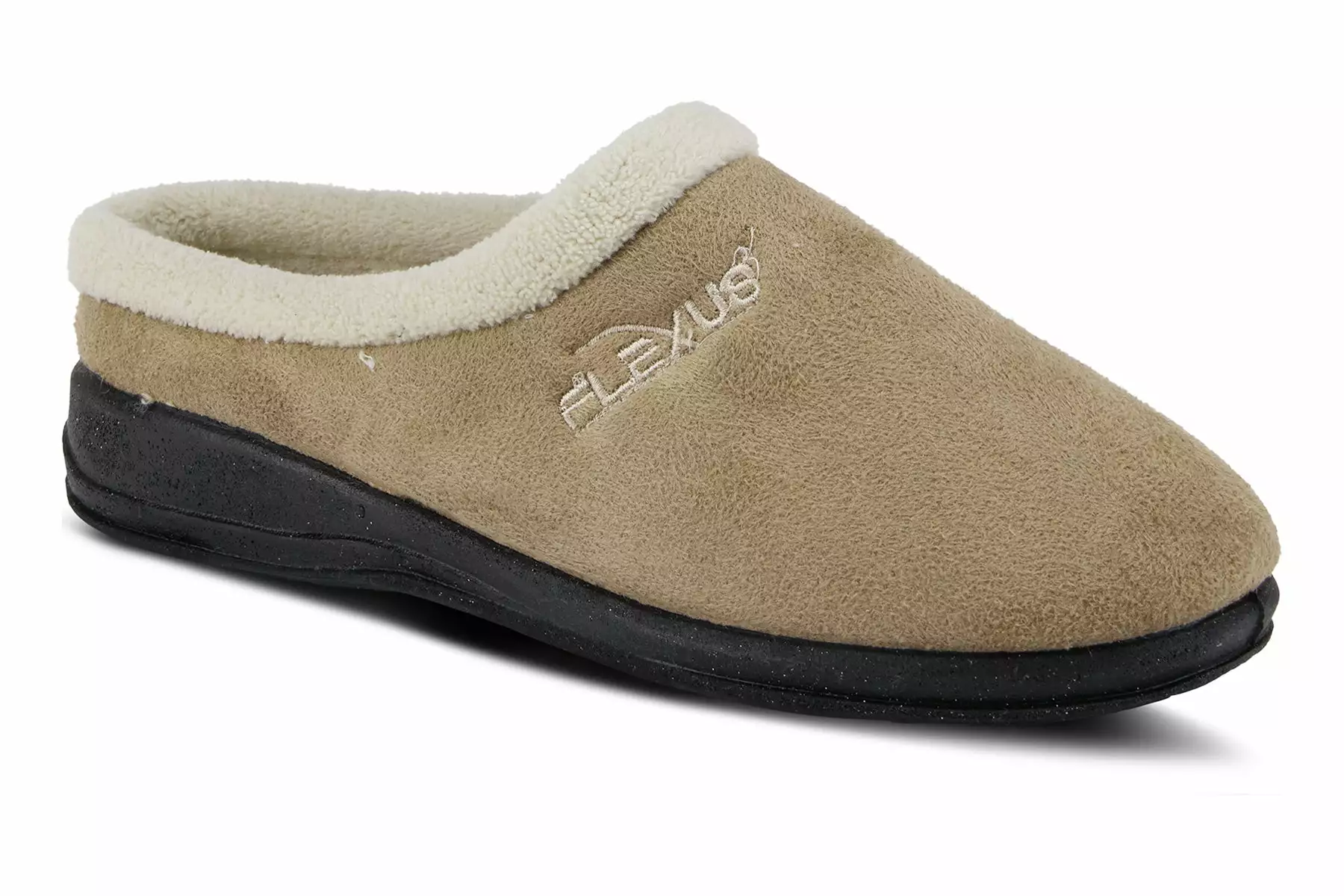 Spring Step Ivana is a chic and cozy indoor slipper. A synthetic suede upper, contrast collar and a slip-proof PU outsole makes these slippers irresistible. Your feet will love the soft textile lining and cushioned insole, as well as the 1 ΒΌ inch heel height.
