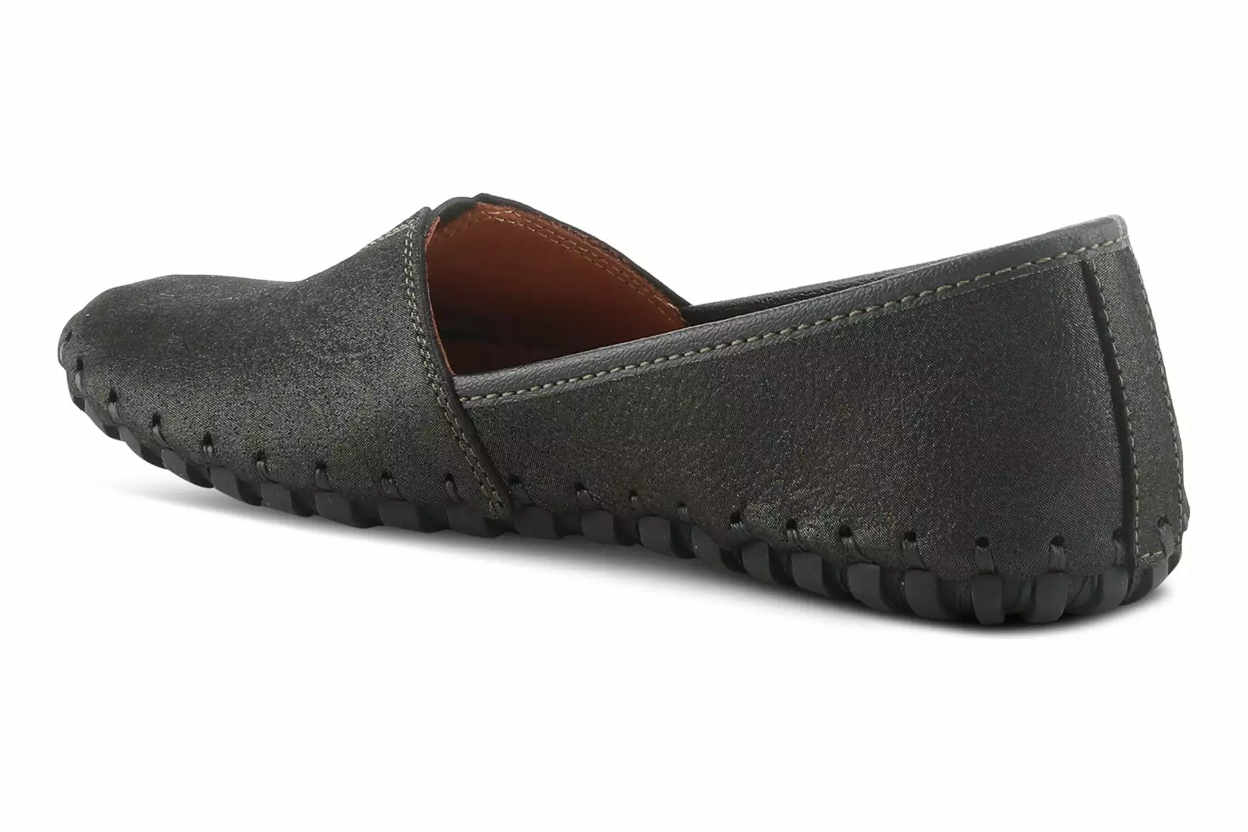 Spring Step Style: KATHALETA-MET -The premium metallic leather adds a rich look for day or night wear. A versatile and comfortable leather Slip-on flat featuring whipstitching detail and a superior removable insole with built in arch support.