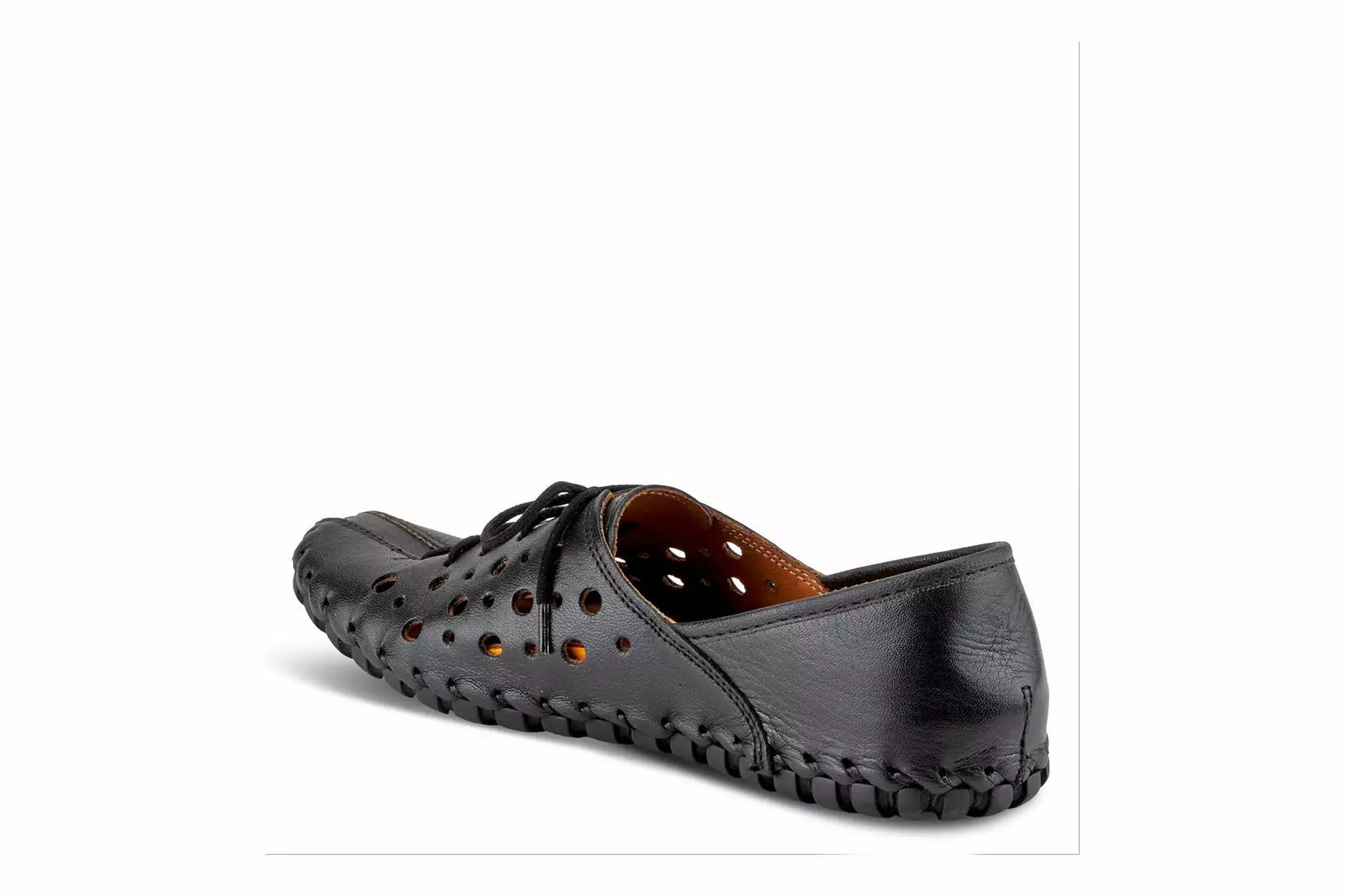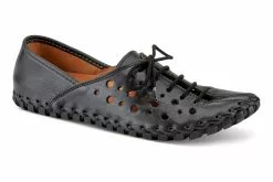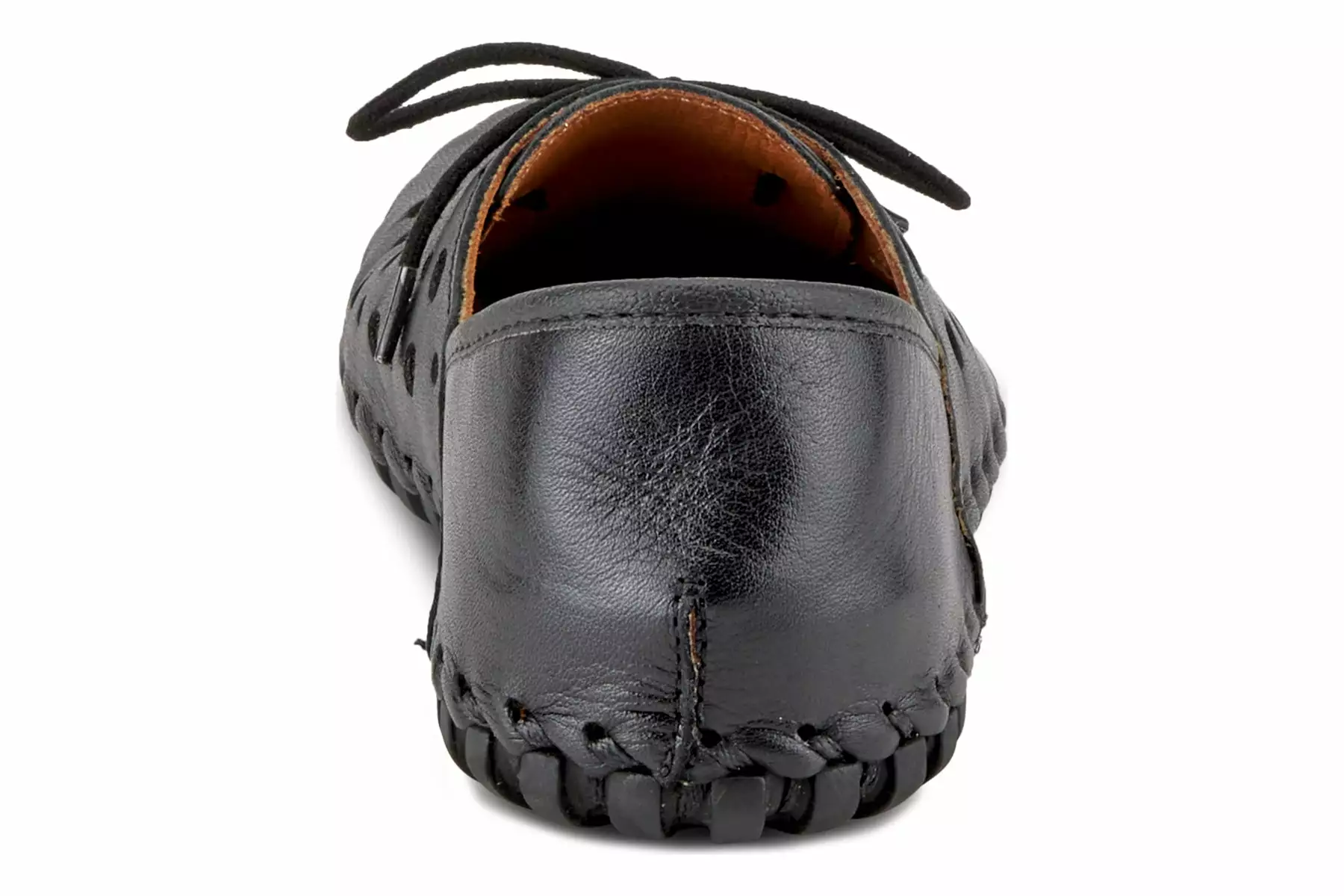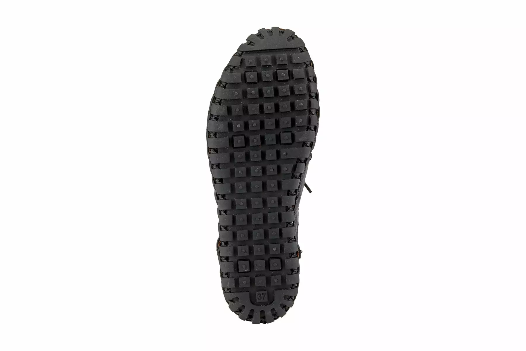 Circular laser cutout on the vamp and exposed contrast stitch trim with elastic laces for a perfect fit. Super lightweight, flexible, rubber outsole on the opanka construction.