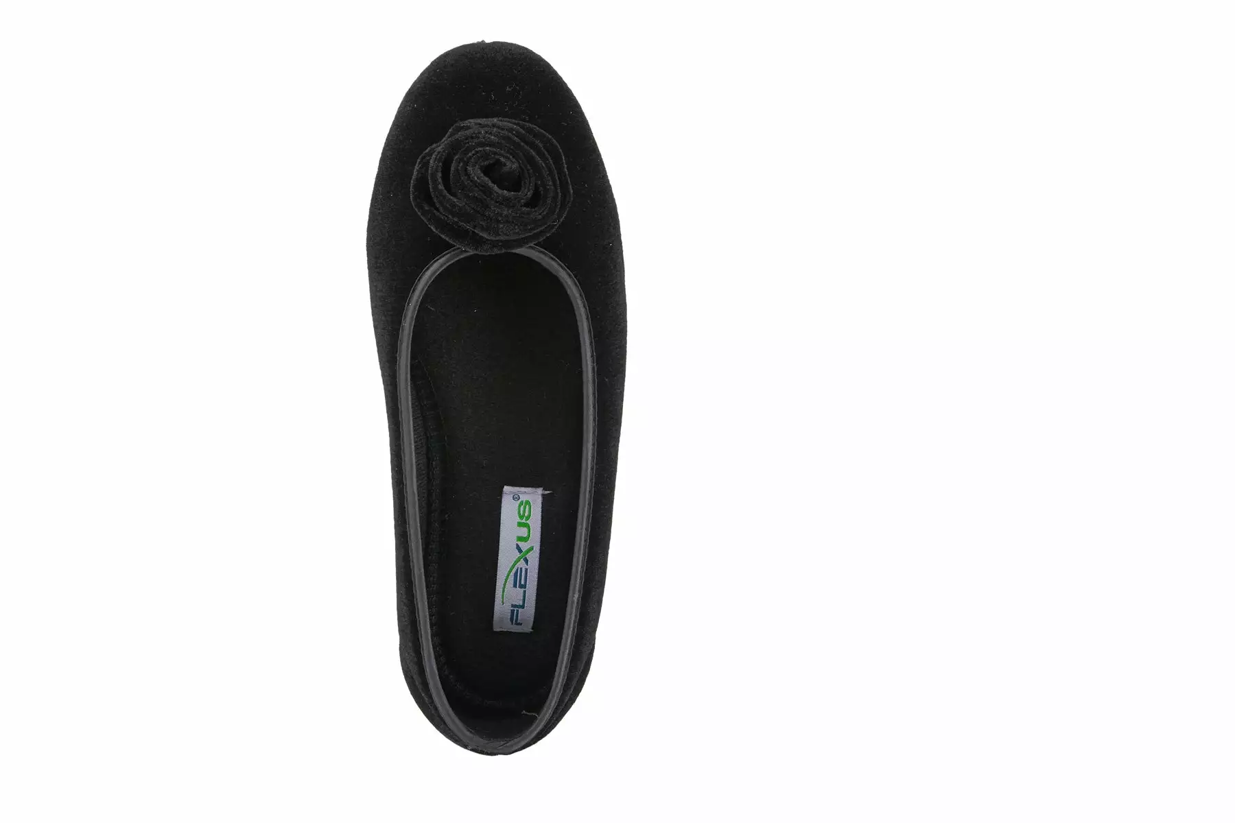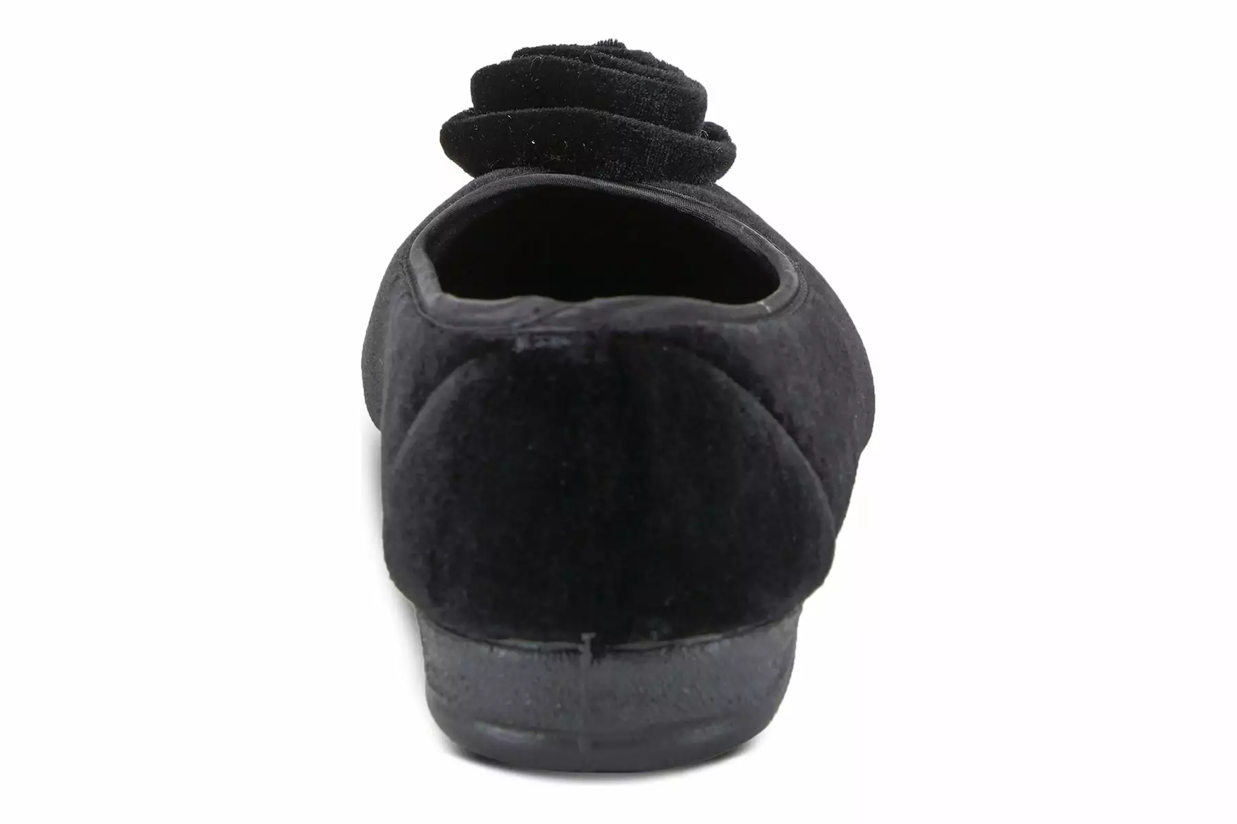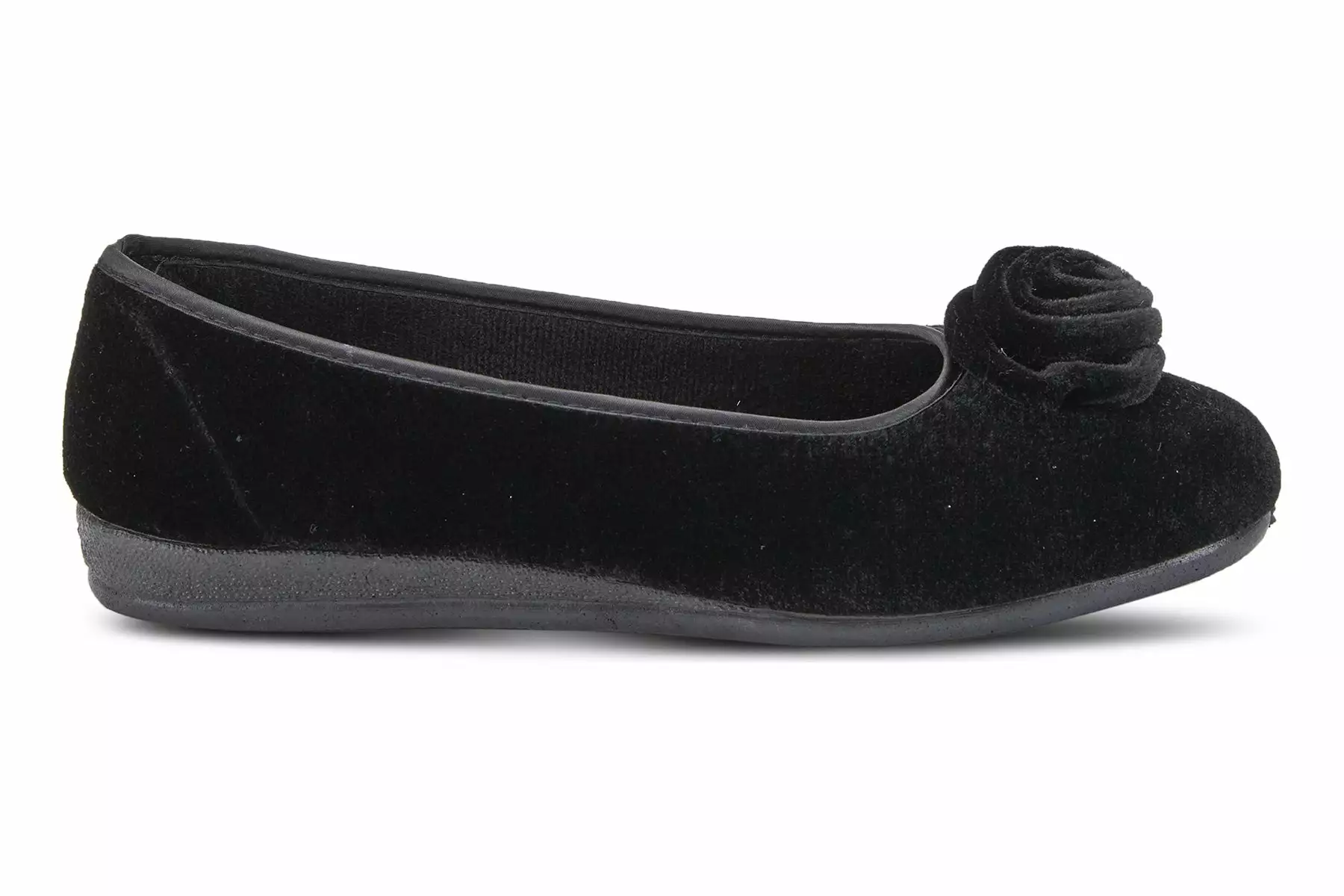 Easy to Slip-on velvet-like indoor/outdoor ballerina slipper with a matching color soft rose detail and superb cushioning for added comfort.
