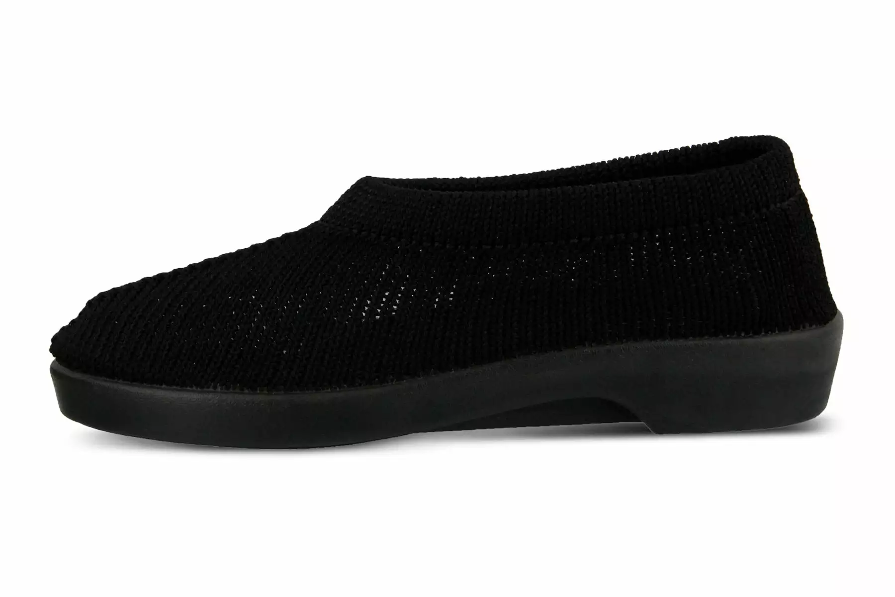 - Breathable knit upper features an elastic stretch topline for easy on and off.