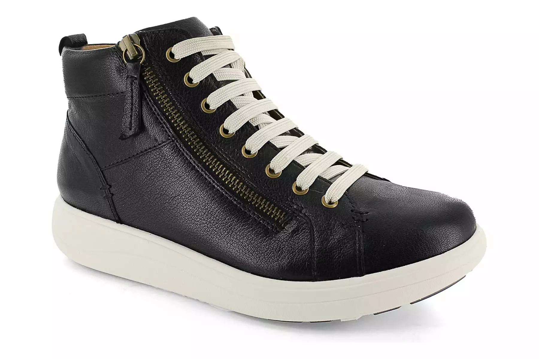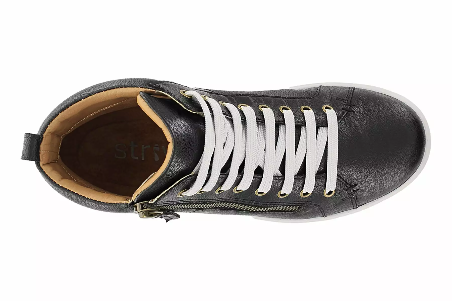 Strive Kensington is a trendy high top sneaker. These versatile shoes have leather uppers, side zipper, cushioned EVA footbed and durable rubber outsole. A textile lining, lace-up vamp and back pull tab helps these sneakers stand out.