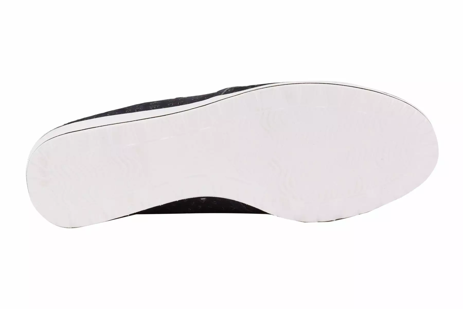 - Textile upper features perforated geometric cutouts and dual side goring for optimal comfort.