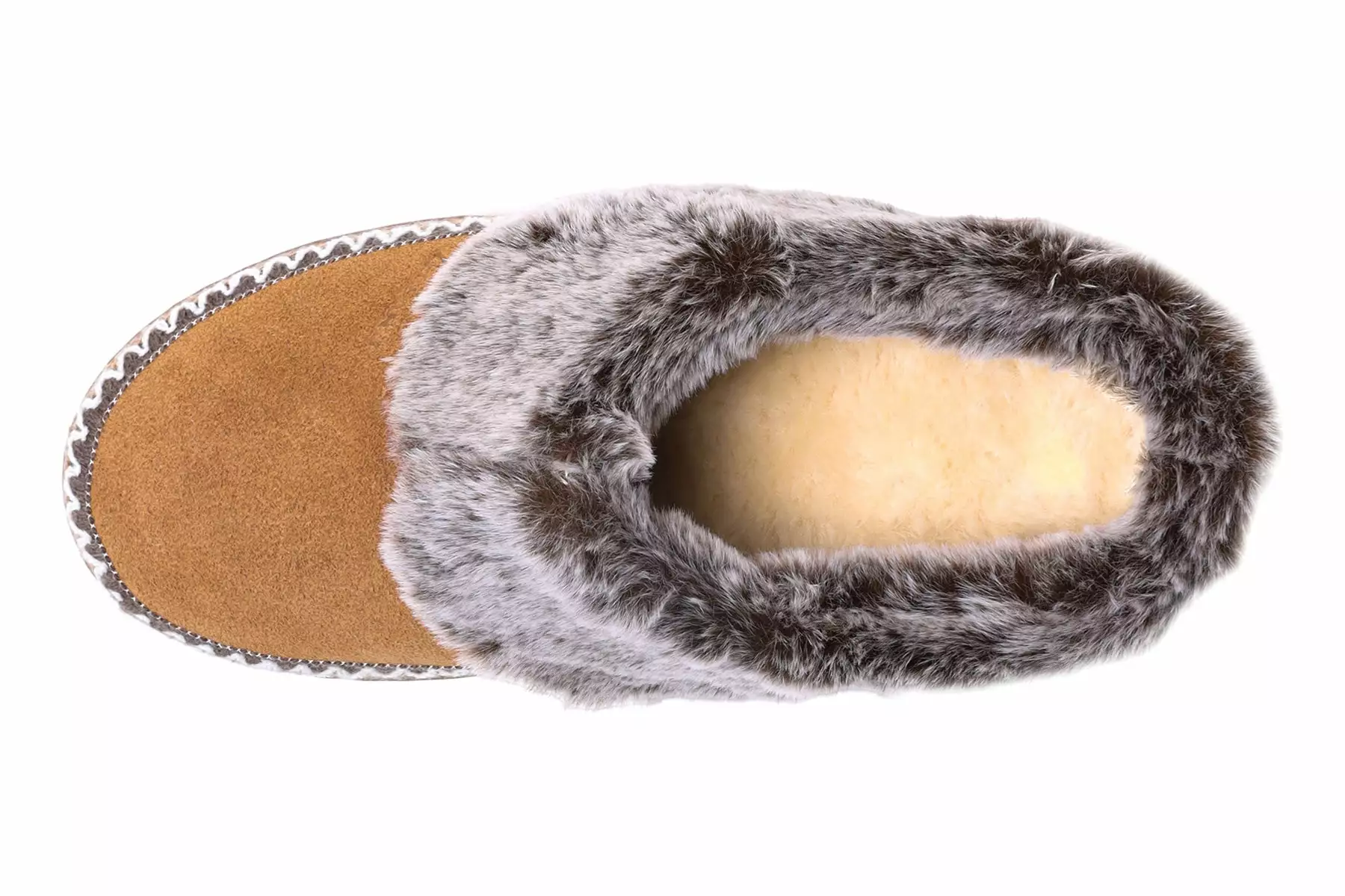 - Genuine suede upper with a soft faux fur collar for added style and warmth.